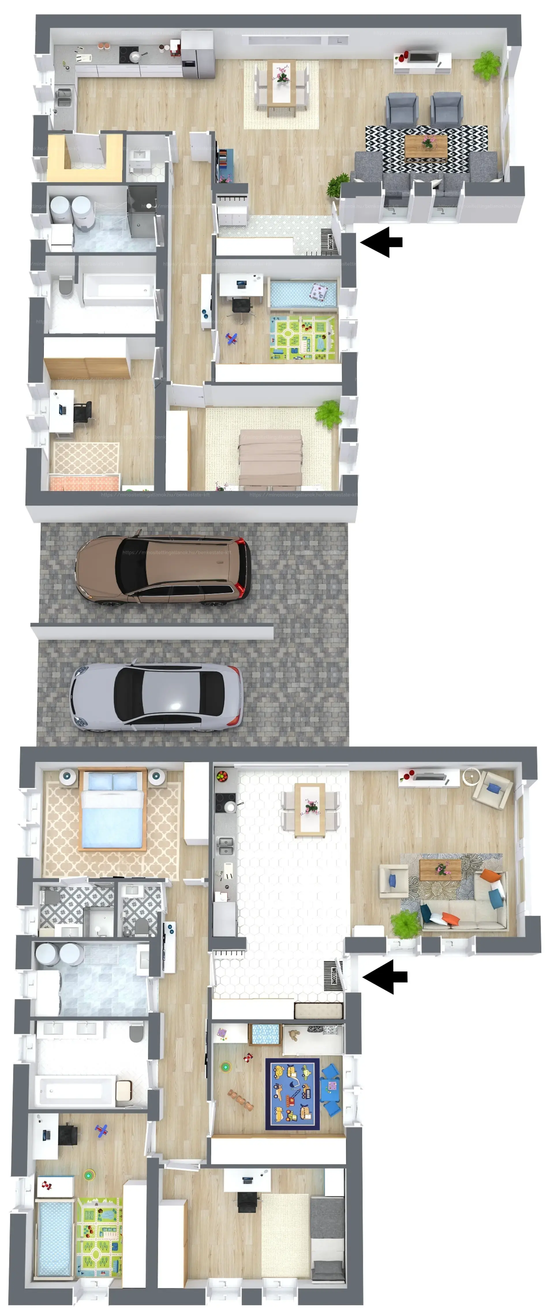 Nappali + 4 háló (119nm + 21nm fedett kocsibeálló):