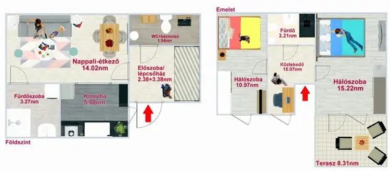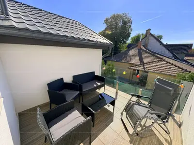 A két hálószoba tágas, és a nagyobbik még egy terasz kapcsolattal is rendelkezik, ami intim és impozáns.