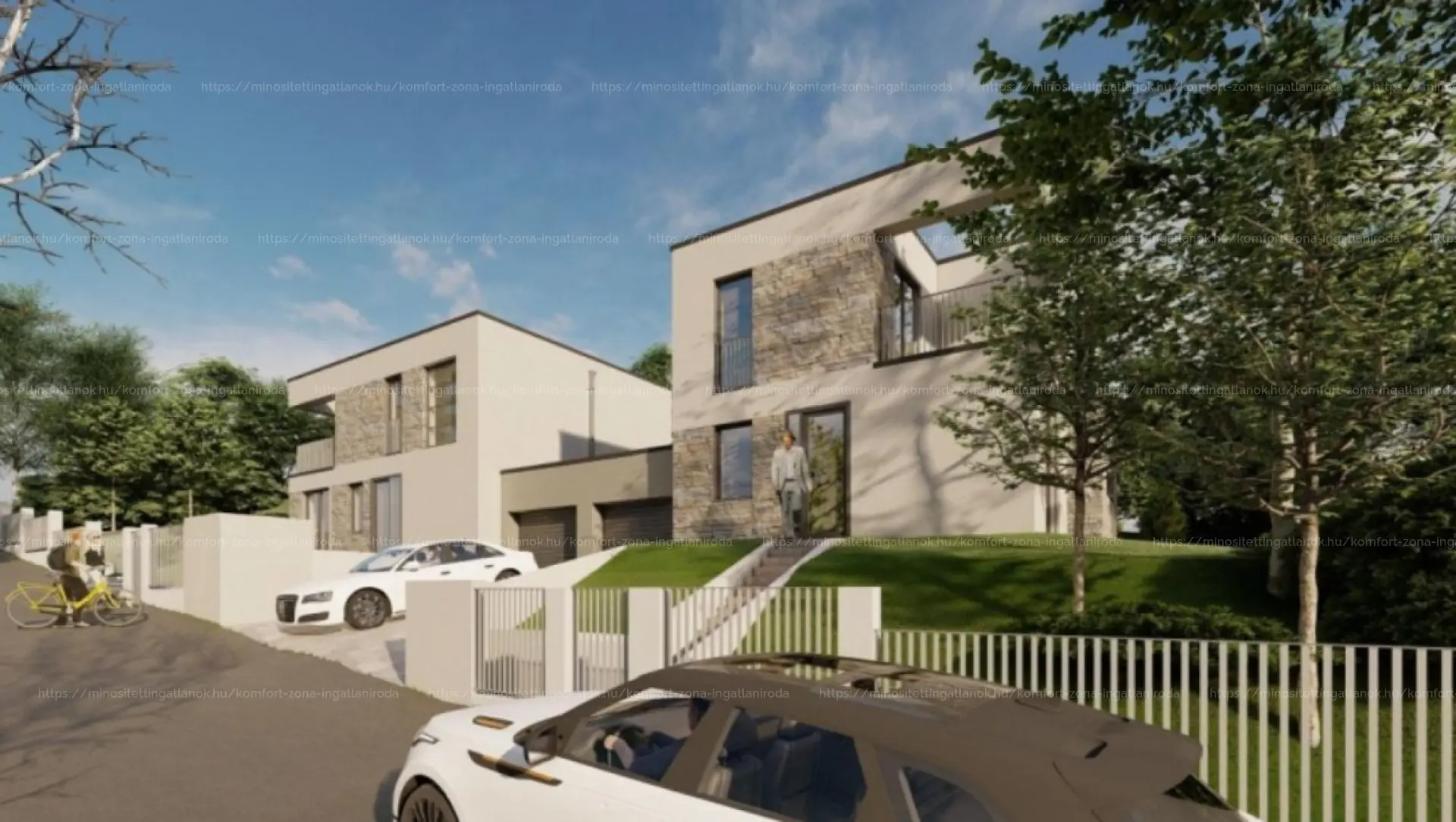 Solymár és Budapest II. kerület határán magas műszaki tartalommal1024 nm telken épülő ikerház amely kizárólag a garázsnál kapcsolódnak, nincs közös fal, ennek köszönhetően önálló családi házként funkcionál.