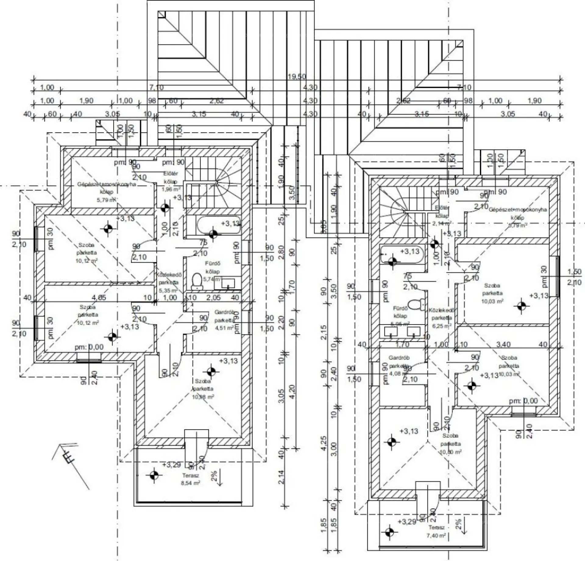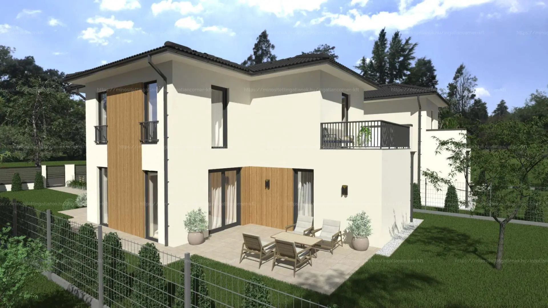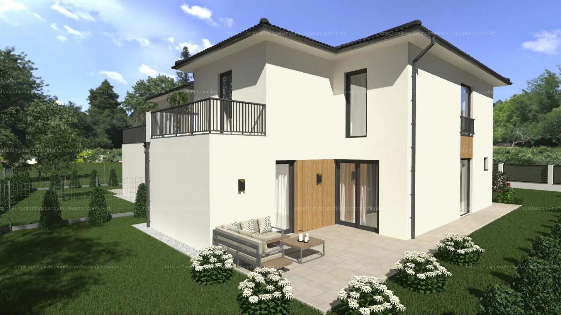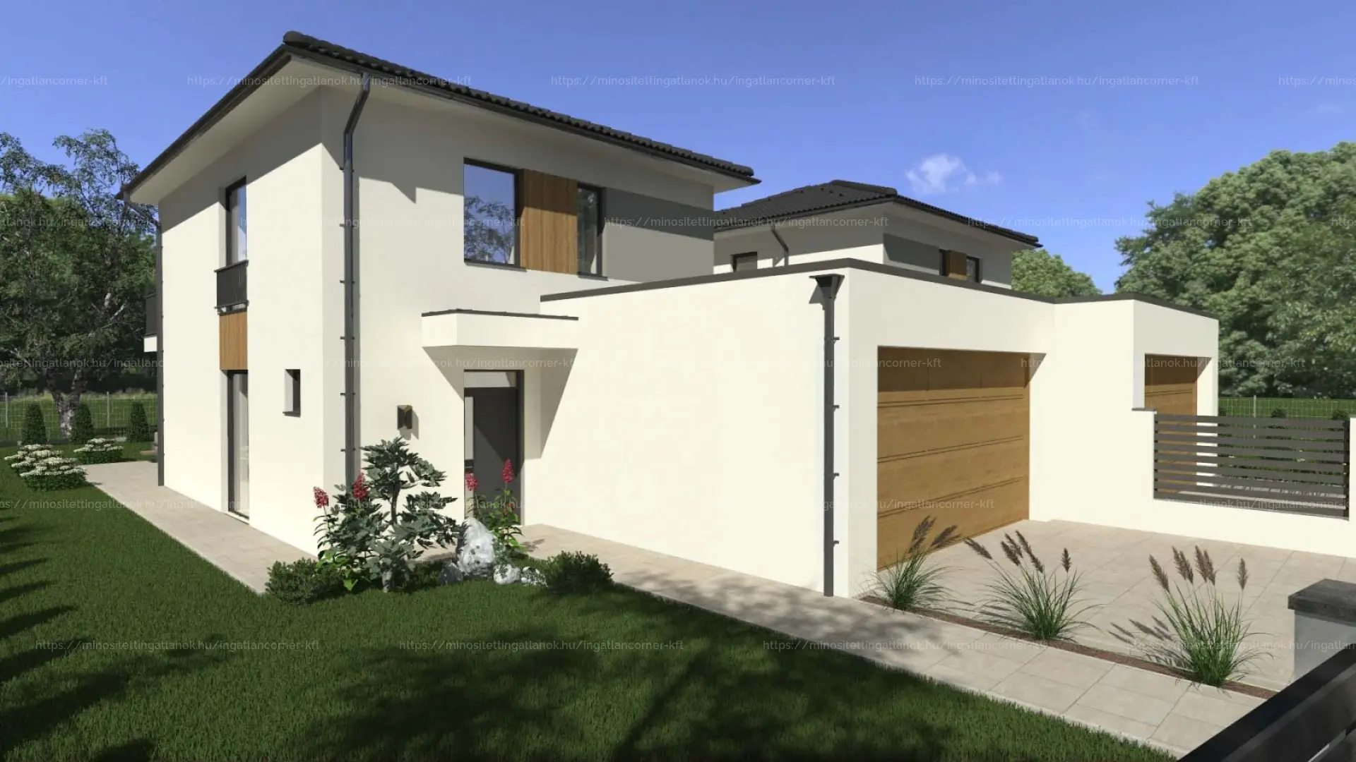 A 151 m² bruttó / 121 m² nettó alapterületű otthonhoz 30 m² dupla garázs és 4 m² saját kültéri tároló tartozik.