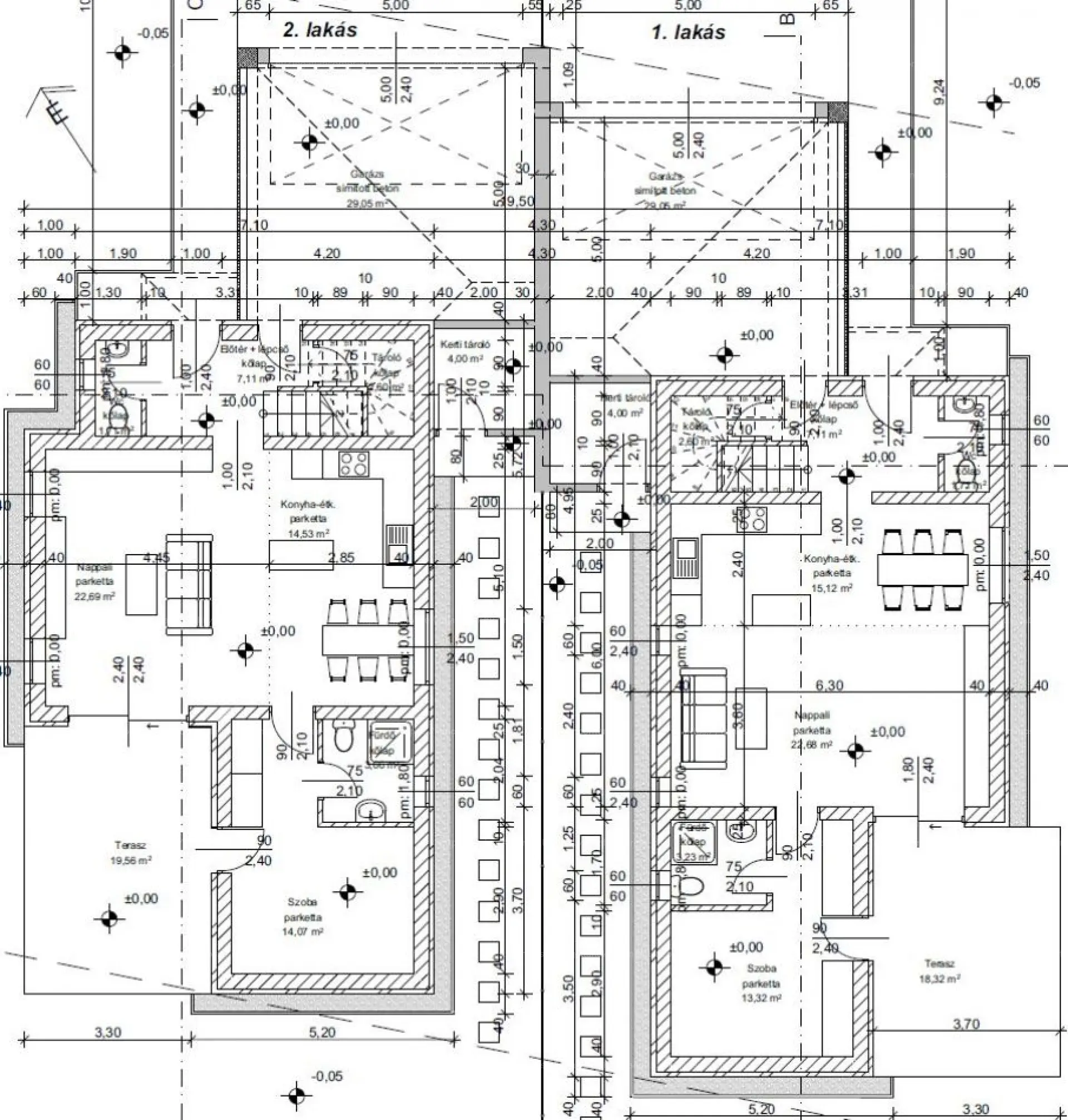 A két lakást csak egy kültéri tároló választja el, így a projekt családi házas érzetet biztosít, mindkét lakás külön utcafronti bejárattal rendelkezik.