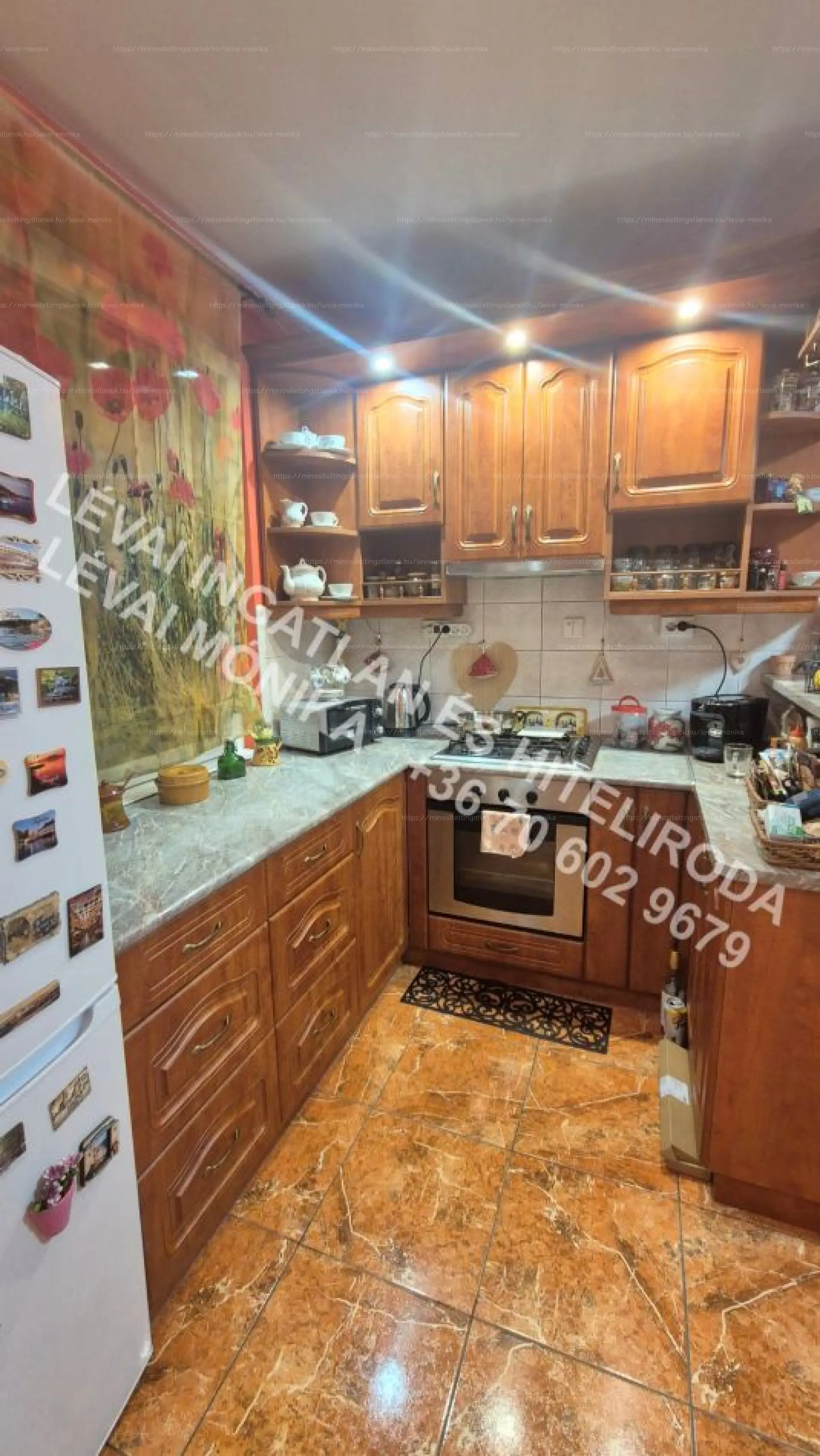 - konyha-étkező, fürdőszoba és a nagyobbik szoba járólappal burkolt, a másik két szoba laminált parkettával,