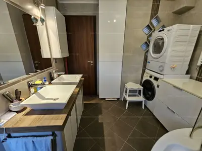 A hálószoba élhető méretű, hangulatos. A tágas és világos nappaliban egy prémium minőségű gépekkel ellátott amerikai konyha kapott helyet. Háziasszonyok álma : praktikusan kialakított és a közös élettérhez szervesen kapcsolódik! A nagyméretű fürdőszobában sarokkád és dupla mosdó szolgálja az ott lakók mindennapi kényelmét. A WC külön helyiségben található és az előtérből, valamint a fürdőszobából is megközelíthető.