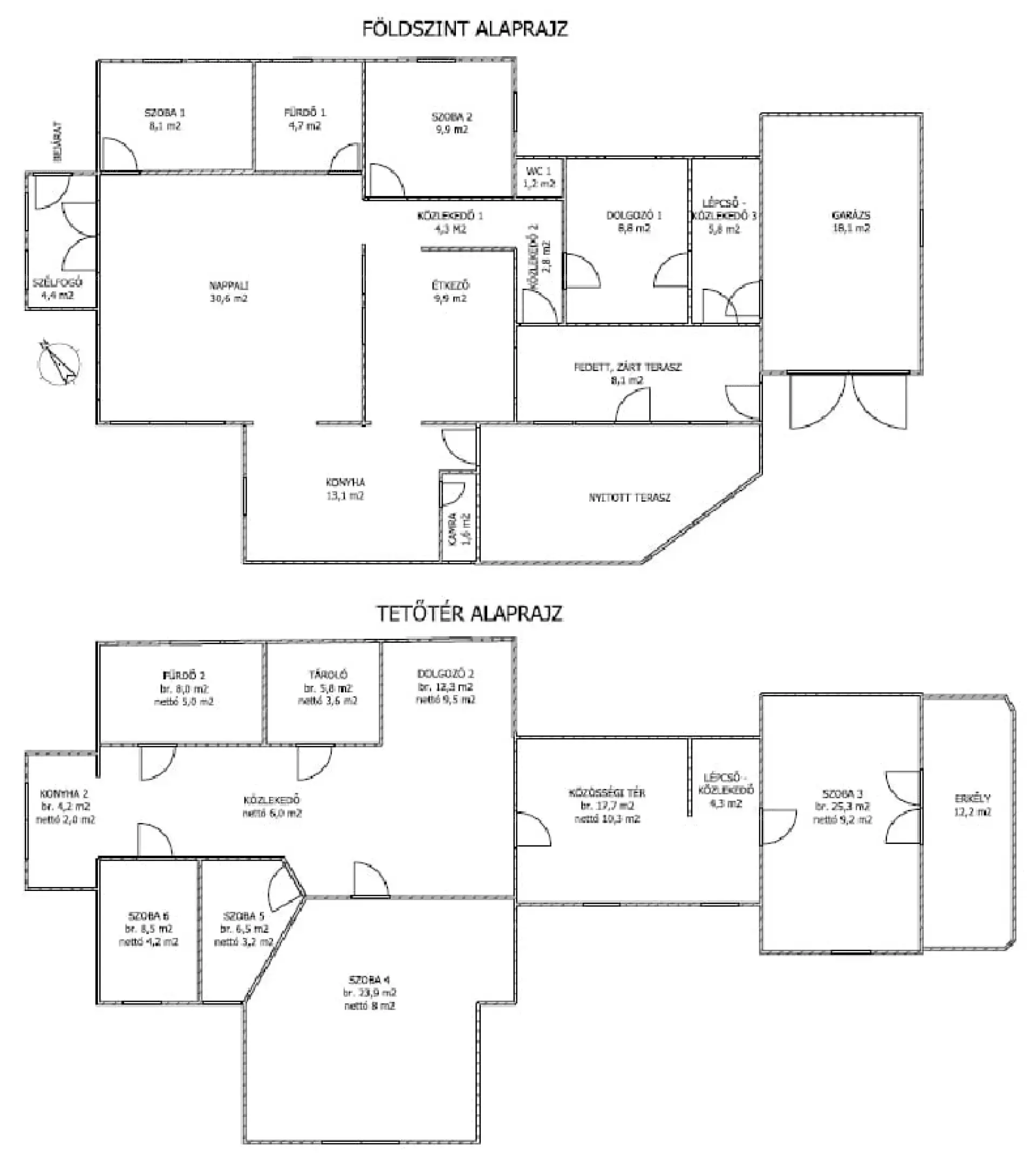 -tetőtér mérete: brutto 129 m2 / nettó 71,5 m2