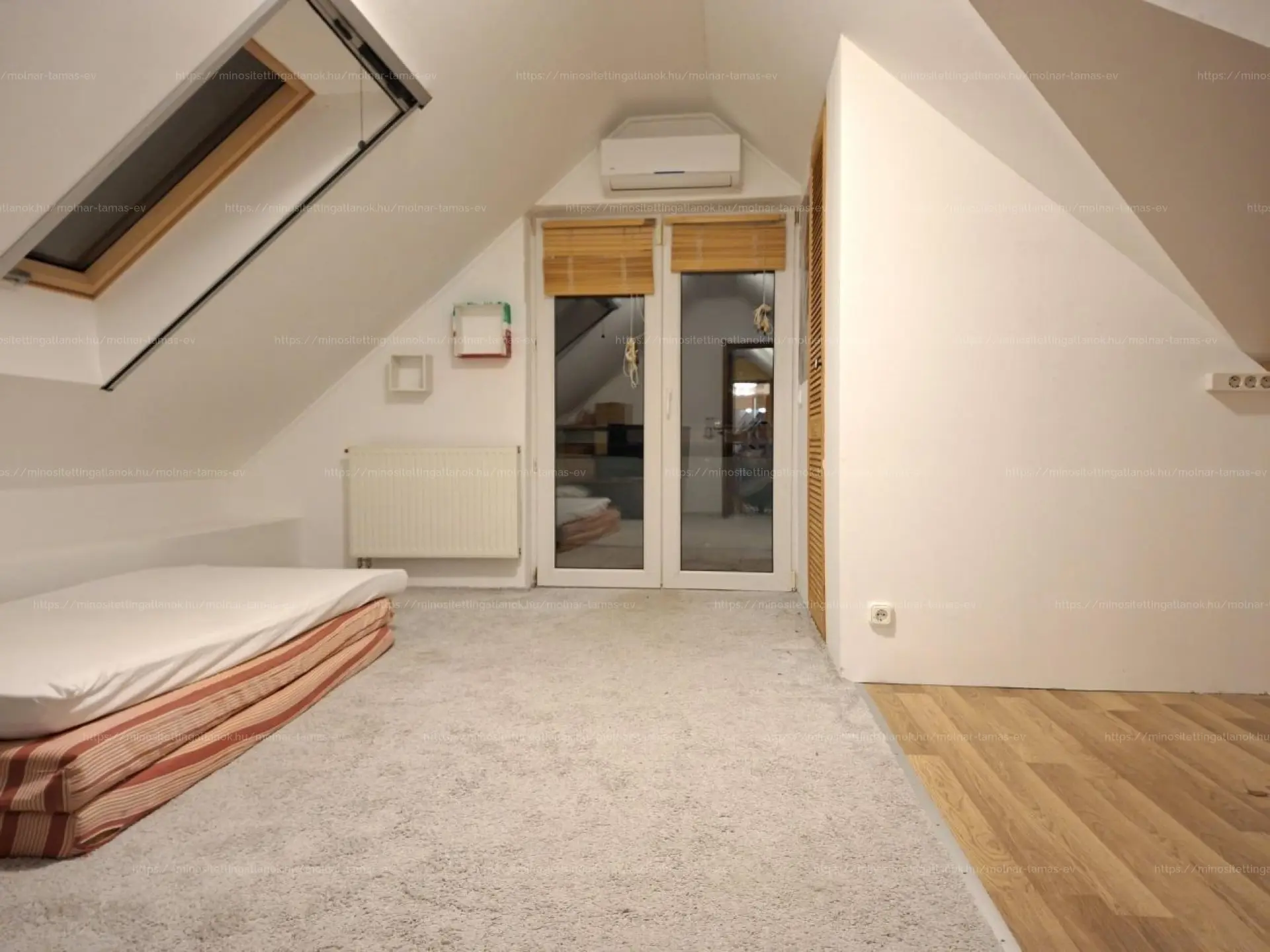 Szombathelyen, a kámoni városrészen csendes, rendezett utcában található ez a nagyon jó állapotú, nettó 185 m2-es tetőteres családi ház.