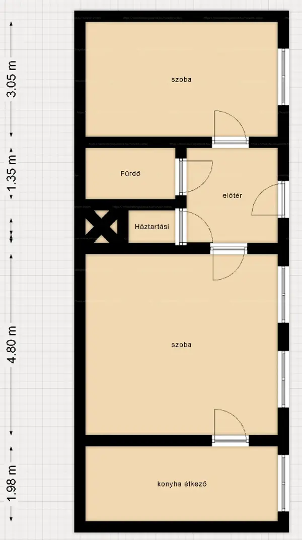 Kruspér utcában eladó egy kétszobás lakás, ami kisebb átalakítással nappali-konyha és két hálószobássá is alakítható.