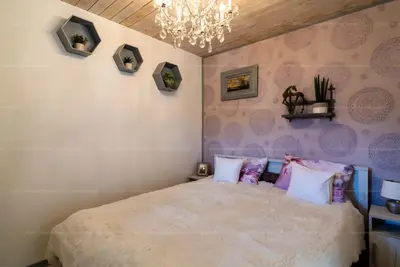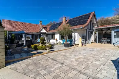 A lakóház 106 m2 3 hálóval, nagy konyha-étkező-nappalival, 2 fürdővel és 2 konyhával. A kialakítására magyarázat az, hogy minősített vendégházkét is üzemeltethető 2 önálló lakrésszel.