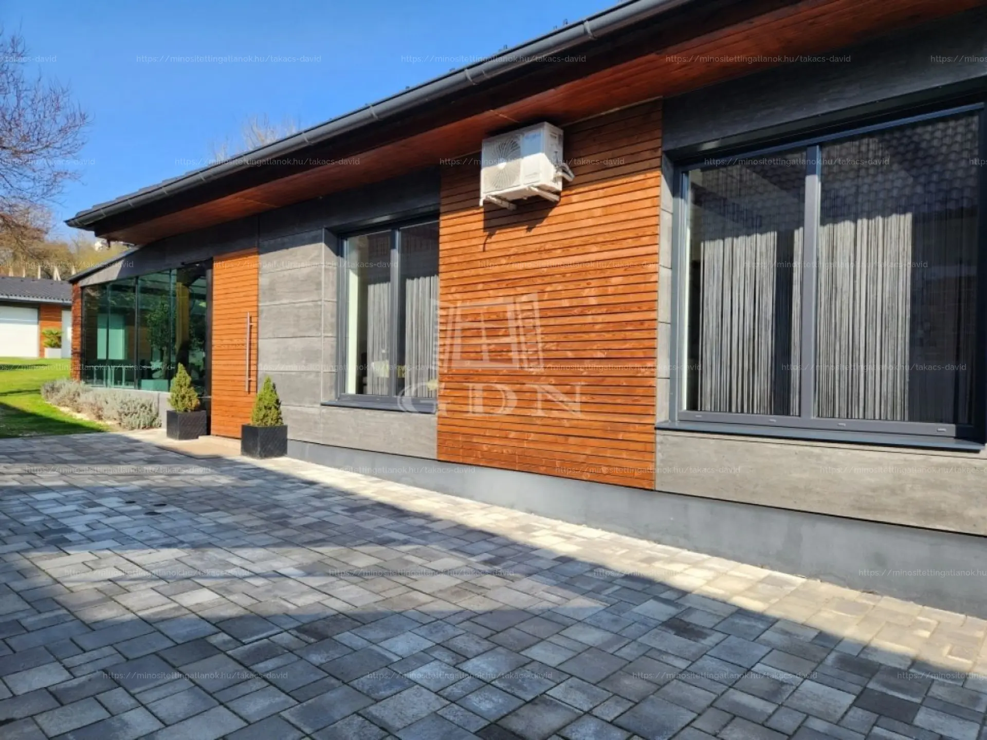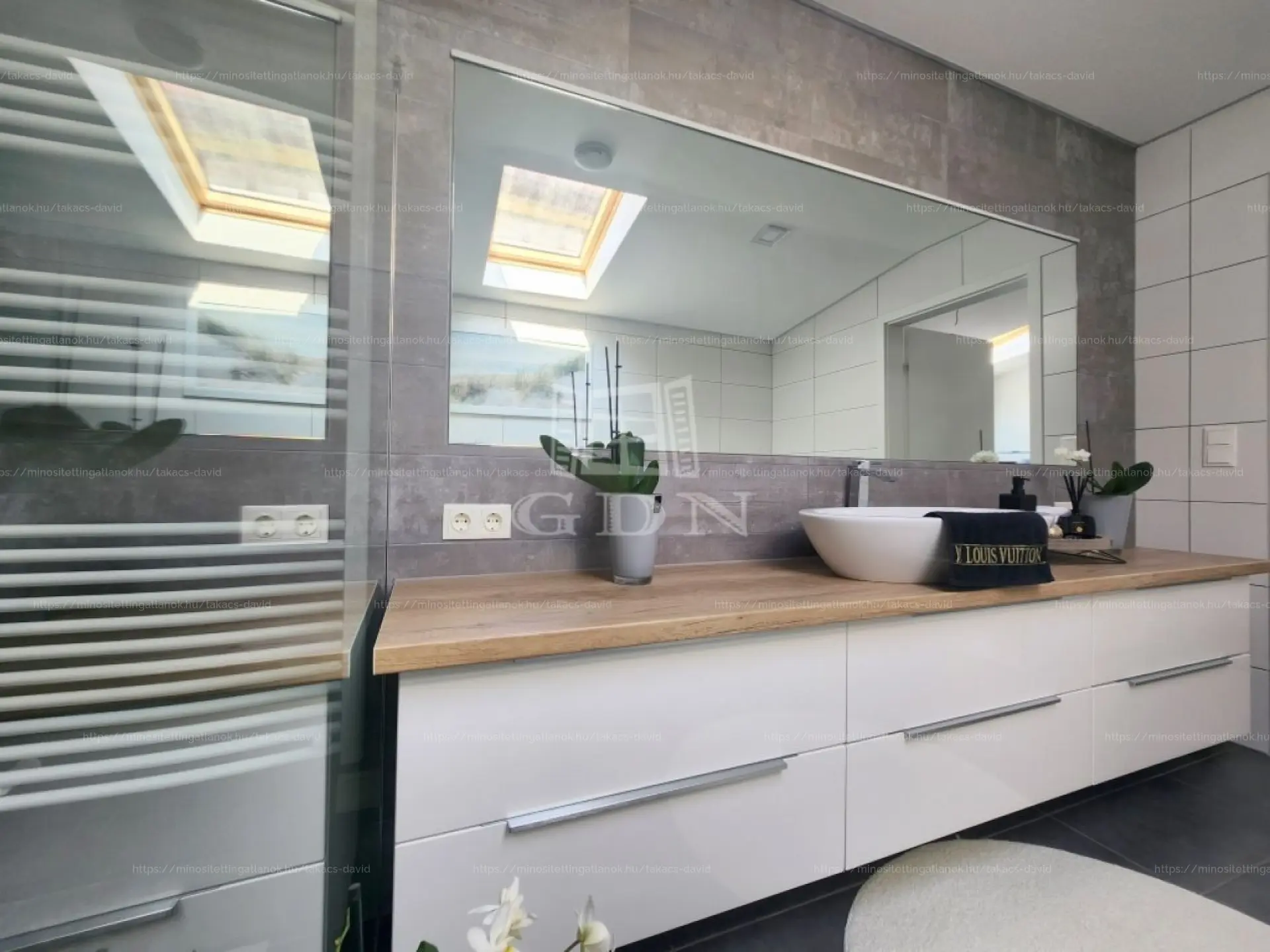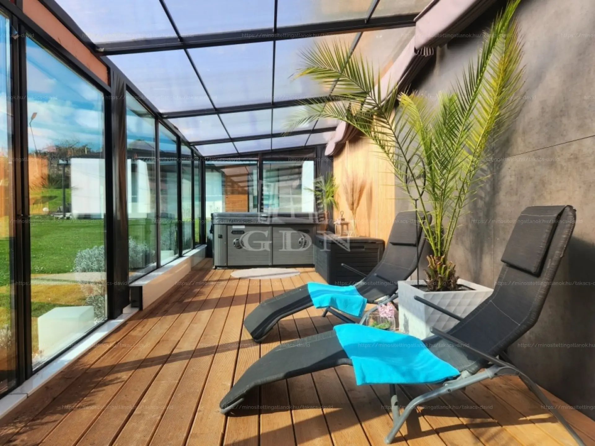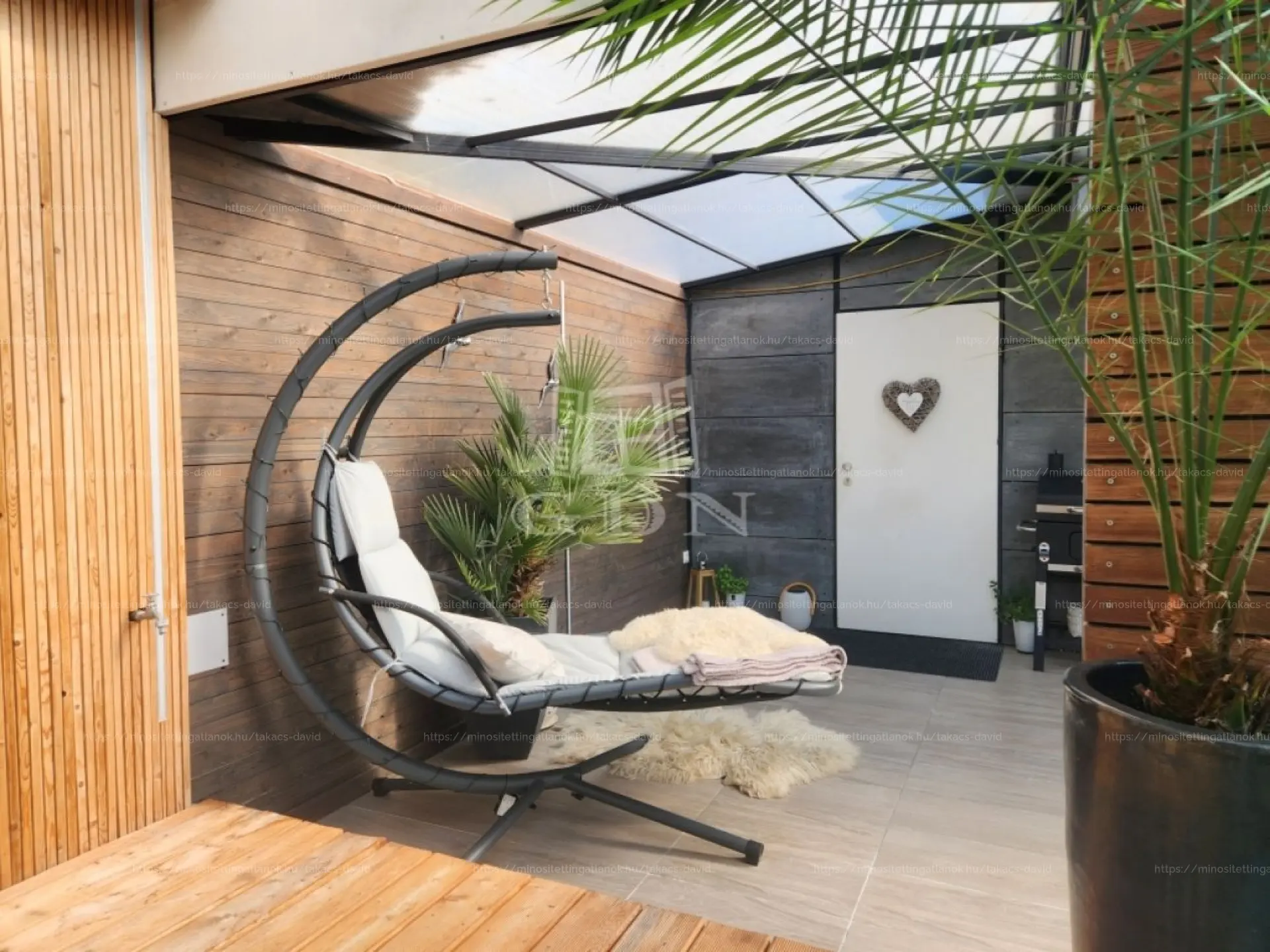 Csendes zsákutcában eladó egy újszerű, 120 m²-es, teljes bútorzattal kínált családi ház, melyet egy 80 m²-es, panorámás terasz ölel körbe.