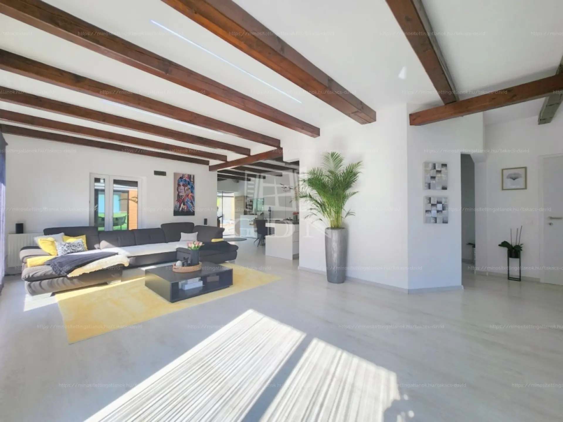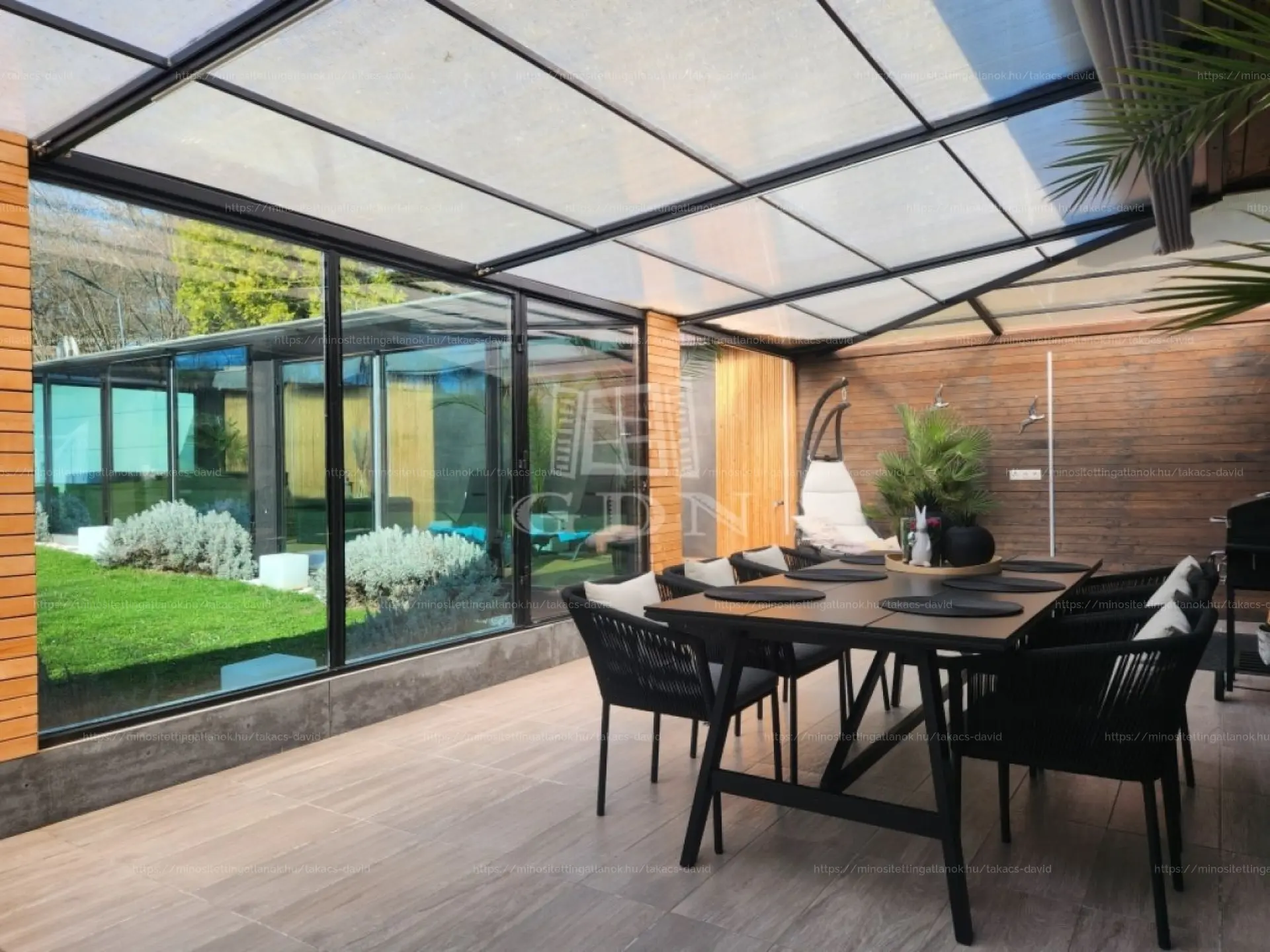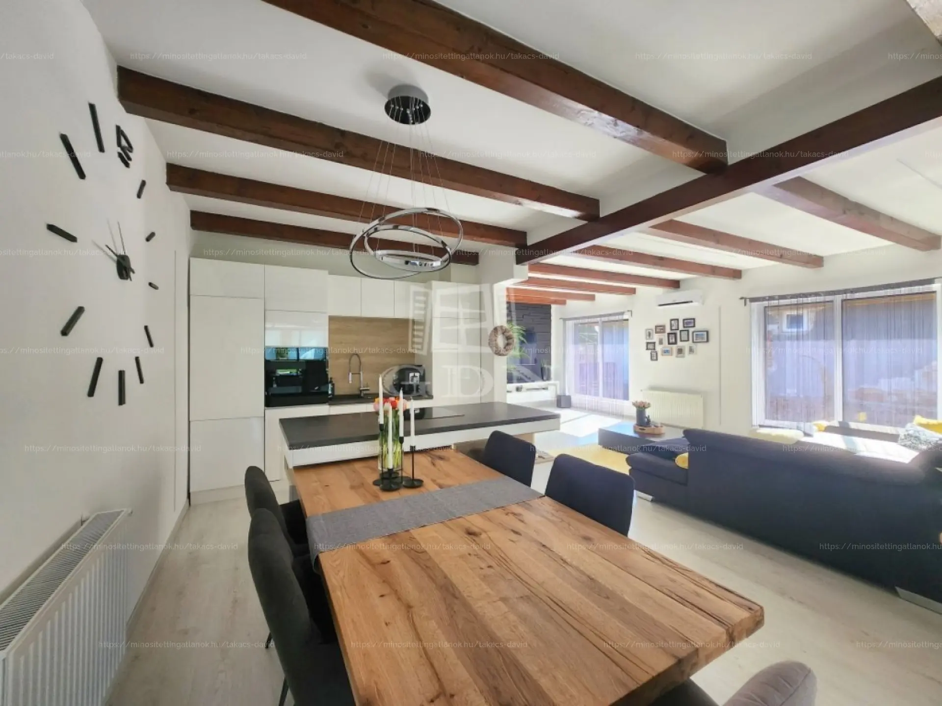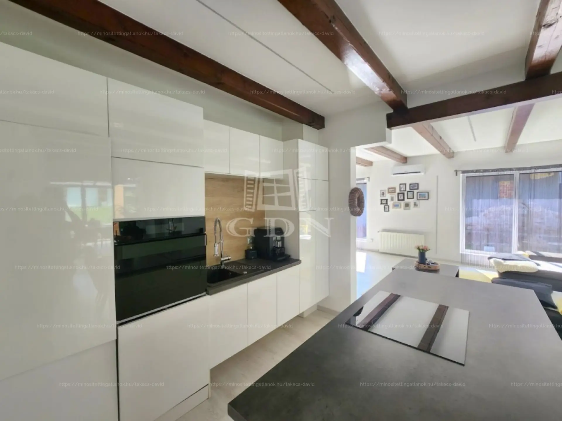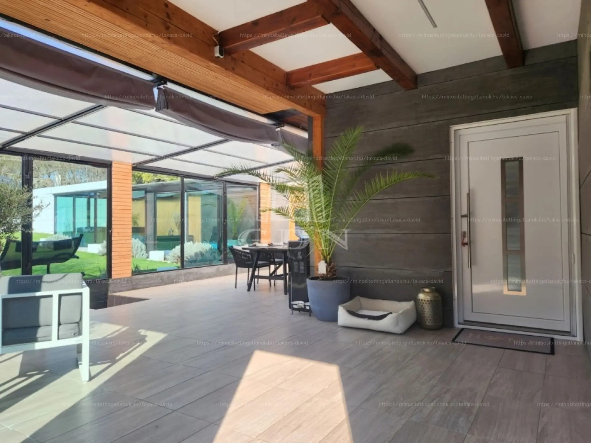 Csendes zsákutcában eladó egy újszerű, 120 m²-es, teljes bútorzattal kínált családi ház, melyet egy 80 m²-es, panorámás terasz ölel körbe.