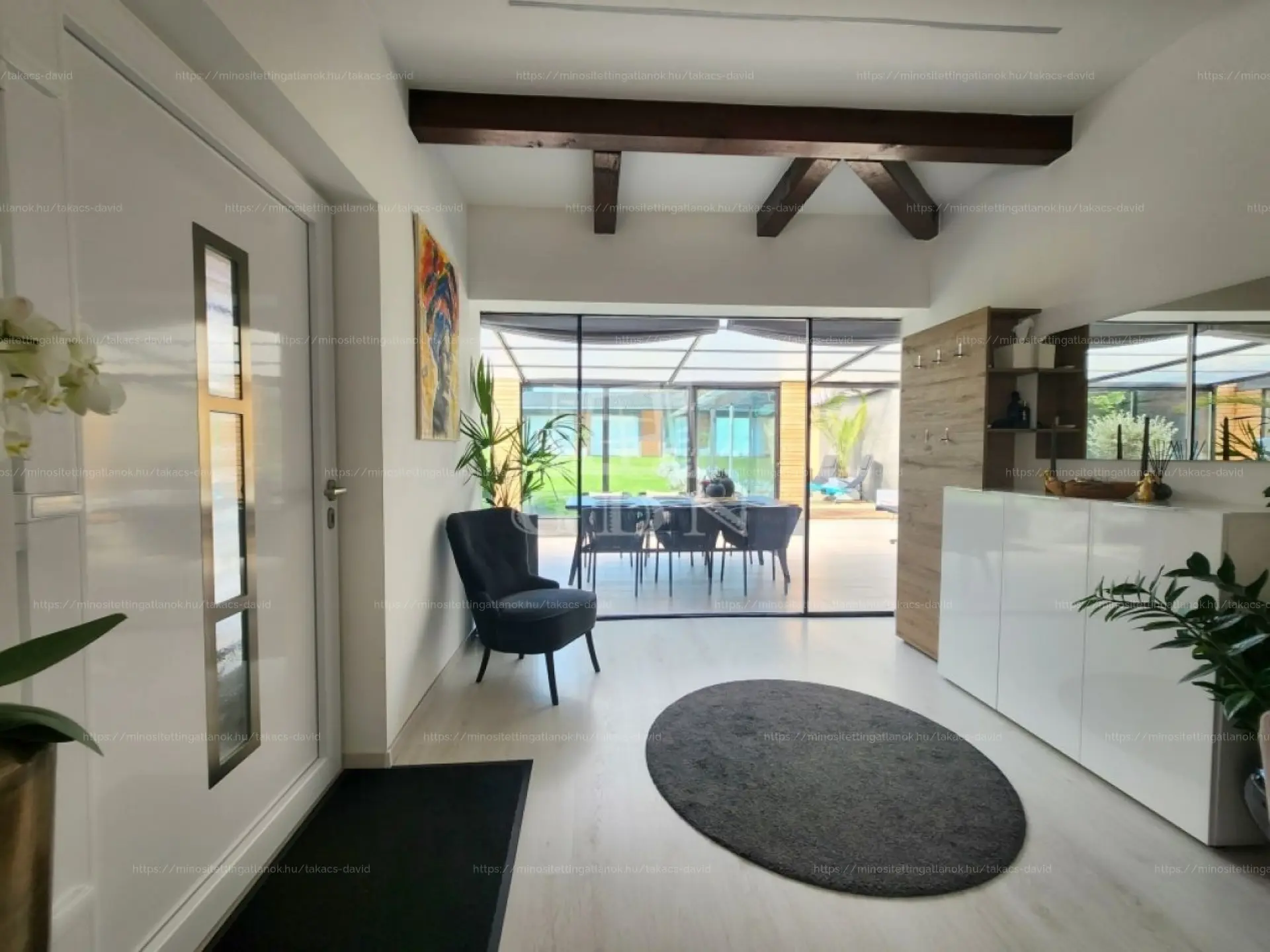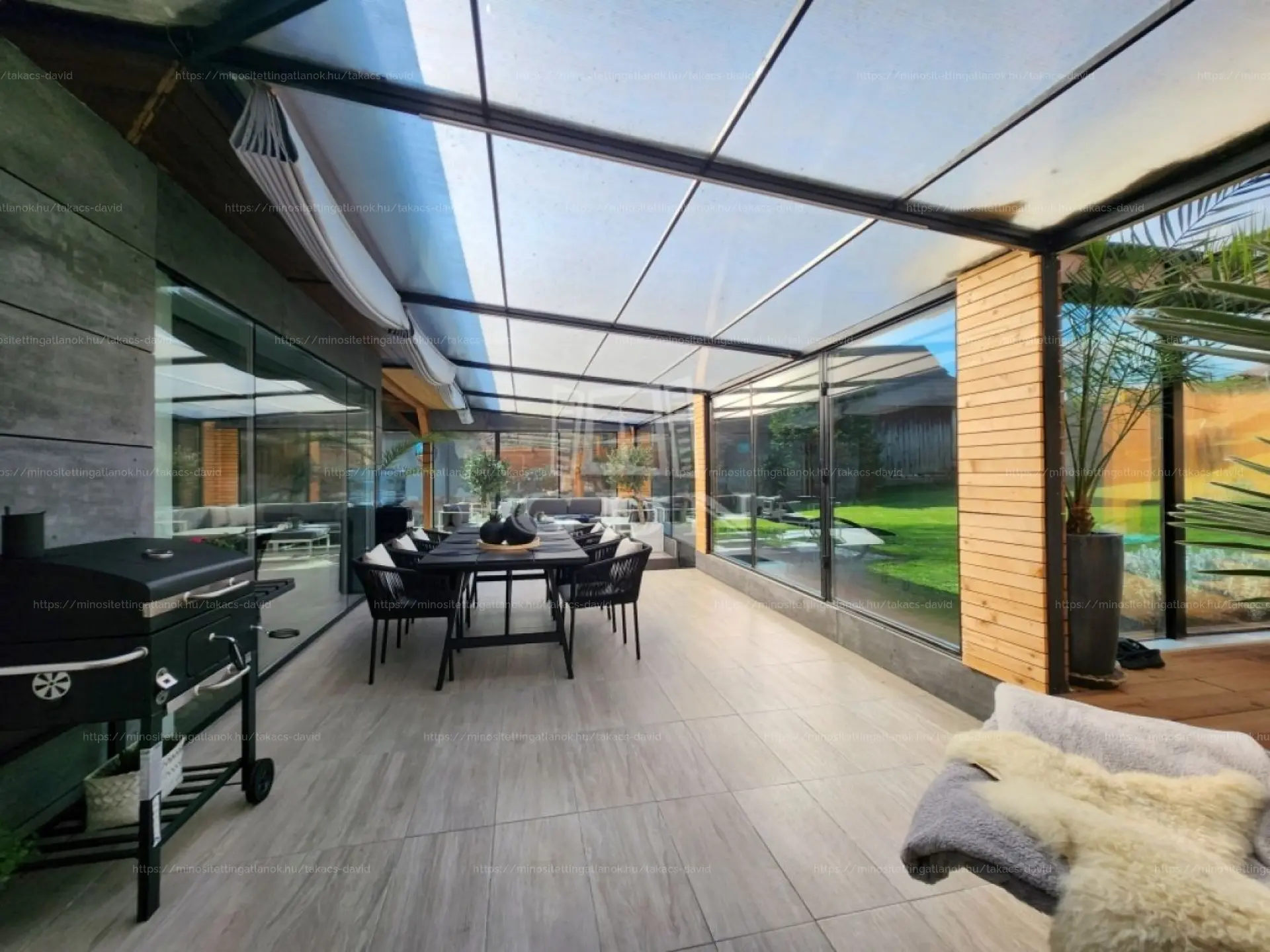 Az épület egyedi megoldásai mellett a teljes, újszerű állapotú bútorzatra is felhívnám a figyelmet, mely az "alap darabokon" túl, a jakuzzit, grillt, kerti bútort, dekorelemeket, szőnyegeket is magába foglalja – így megtartva az összhangot, melyet a színek, az anyagok és azok harmóniája alkot.