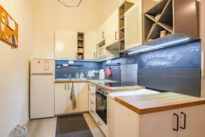 A lakás kiválóan kiadható a belvárosi lokációból és a két külön szobából adódóan, középen a közös konyhai térrel valamint a fürdővel.