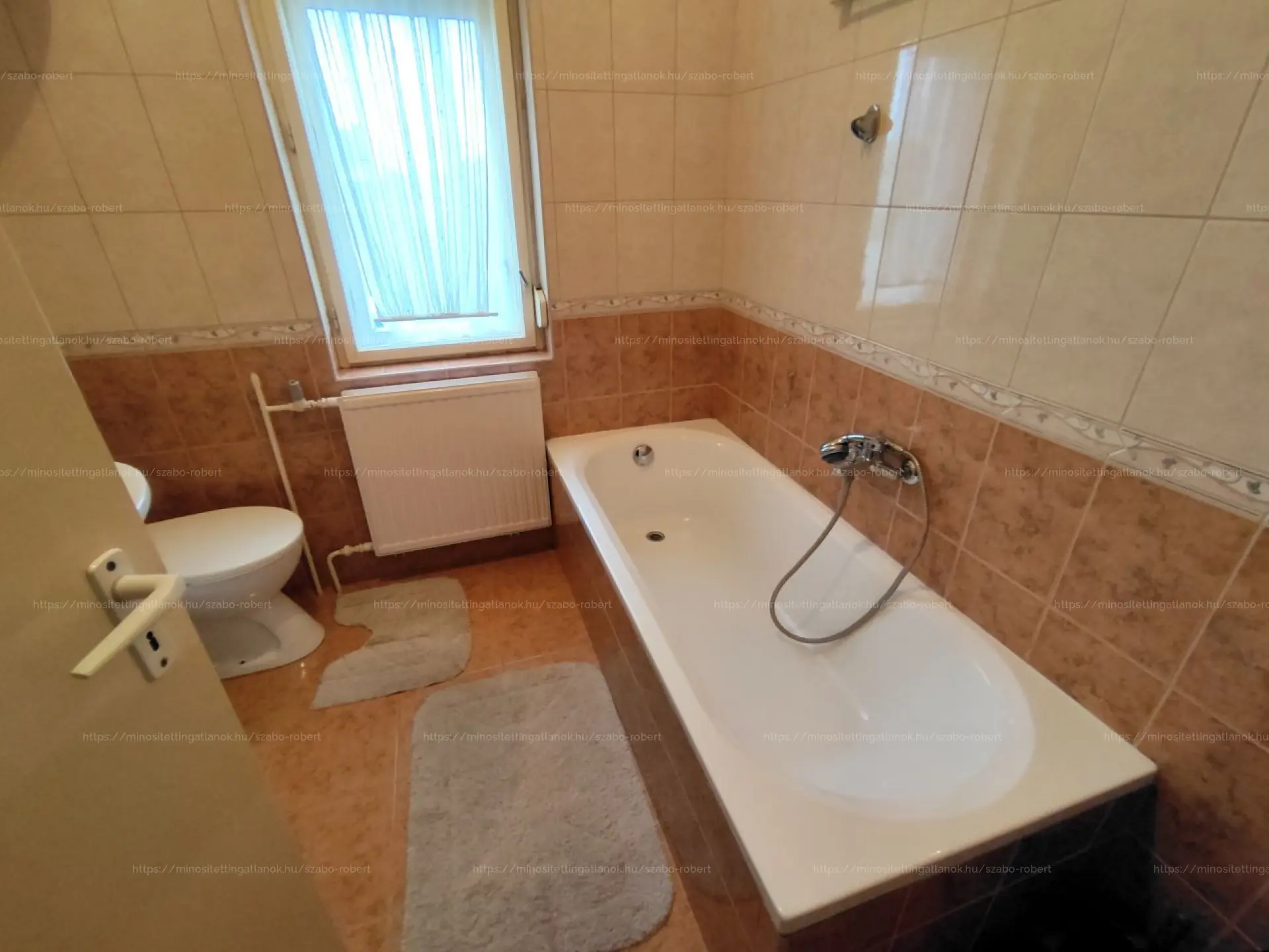 Az emeleti fürdőszoba felújított, a többi helyiség burkolatai jó állapotúak. A tető síkpalával fedett, szintén stabil, beázásmentes.
