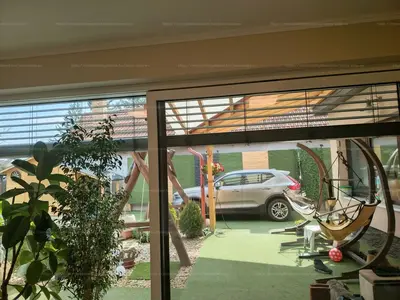 Der hinzugefügte Teil des Gebäudekomplexes wurde 2016 fertiggestellt, mit einem Ziegelmauerwerk, das organisch mit dem zuvor gebauten Haus verbunden ist. Er verfügt über ein geräumiges Wohnzimmer und ein Badezimmer mit Dusche. Das Wohnzimmer hat eine Schiebetür, die direkt in den Innenhof führt. Weiter finden wir den Fitnessraum und den Wintergarten, die über separate Eingänge verfügen. Zum Wintergarten gehören auch Einbauküchenmöbel. Die hochwertigen Kunststofftüren und -fenster sind wärme- und schallisoliert, mit Insektenschutzgittern ausgestattet, Fenster und mehrere Türen sind Schiebetüren. Die Böden sind mit hochwertigen Vinyl- und Keramikfliesen belegt, der Fitnessraum ist mit speziellen Fliesen ausgestattet.