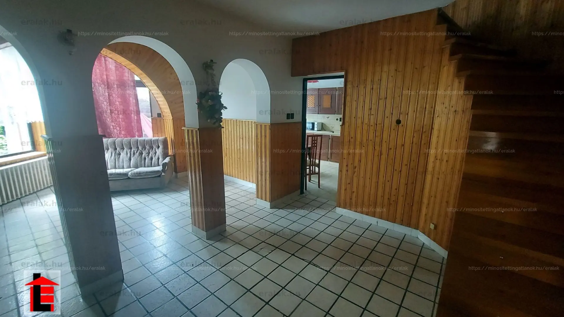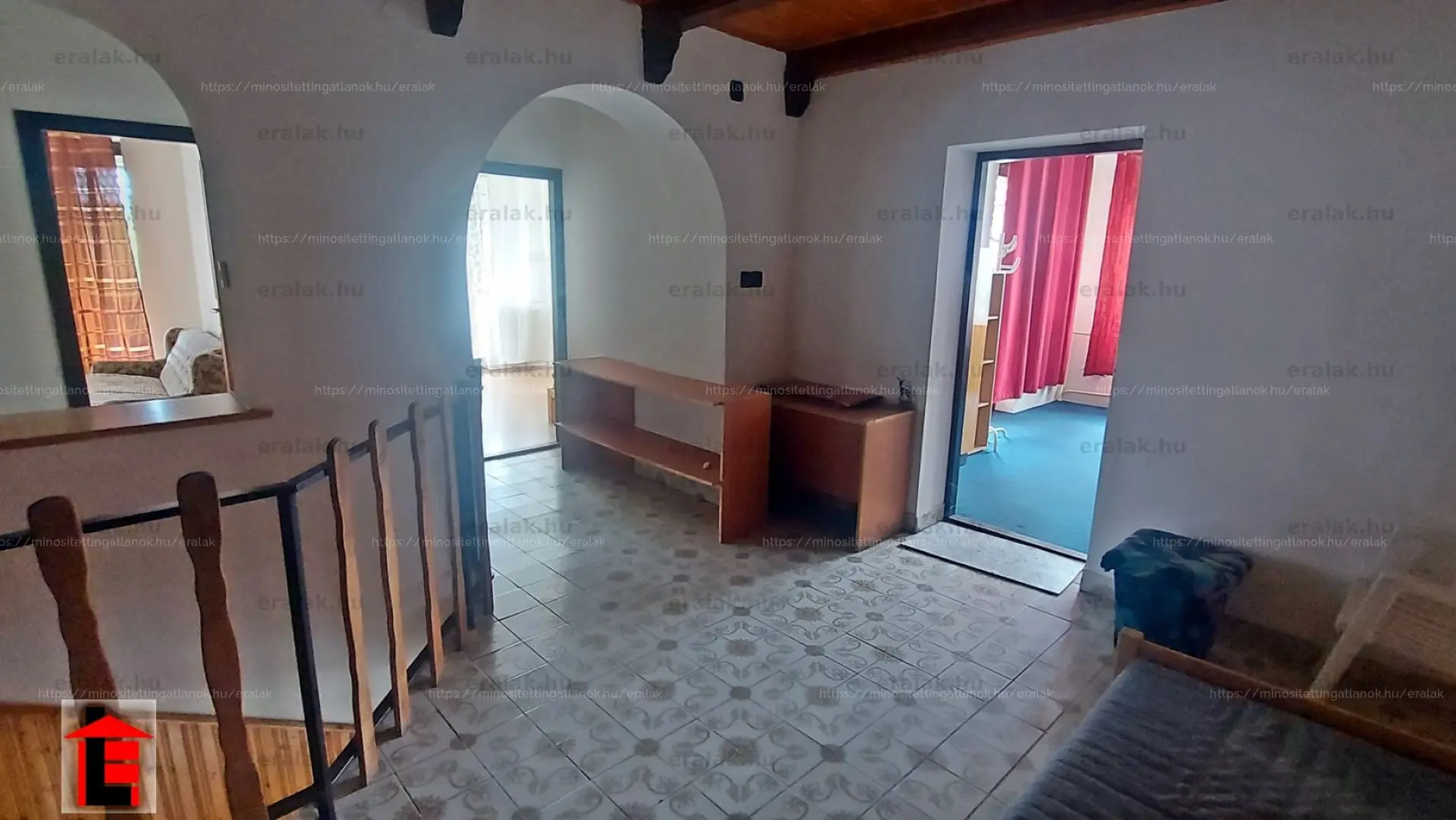 A két szintes épületben megtalálható a - külön konyha - 6-7 óriási szoba - melyből 1 nagy nappali a földszinten+ 1 kisebb nappali az emeleten van - fürdő,zuhanyzó,wc-k, háztartási helyiség,erkély... és egy betonozott, vakolt, száraz 93 nm-es pince.