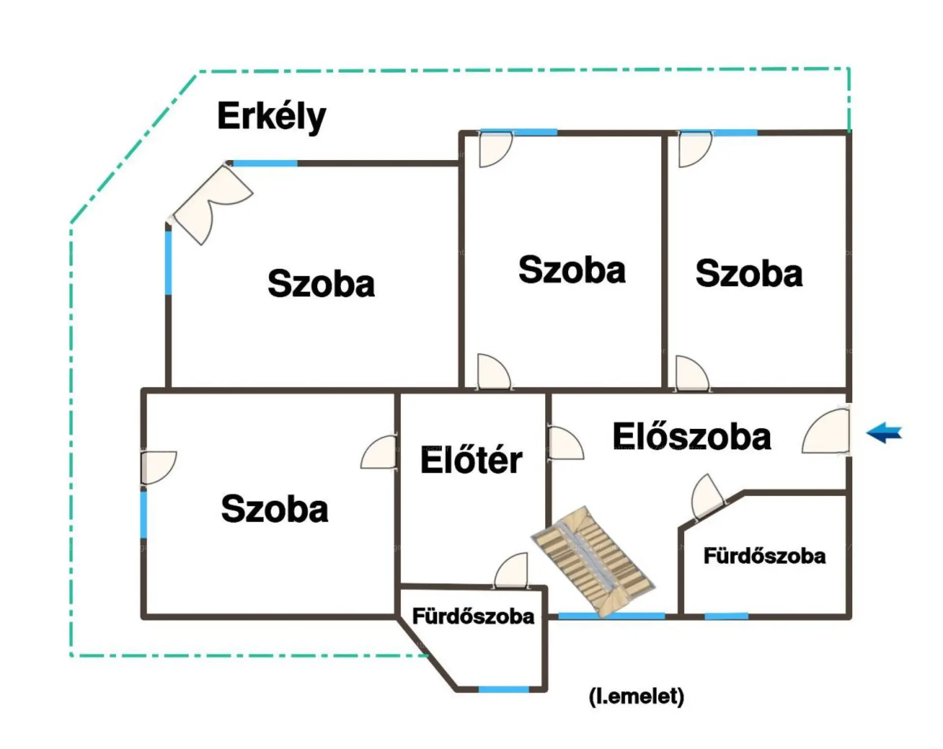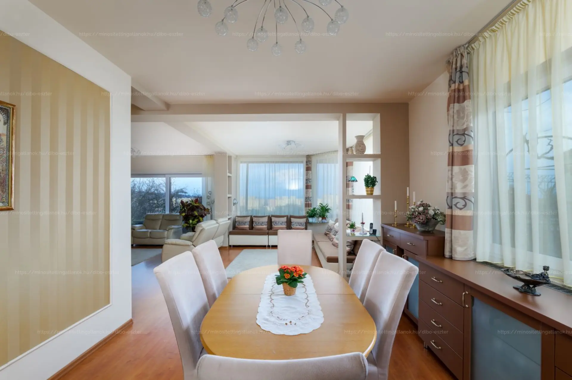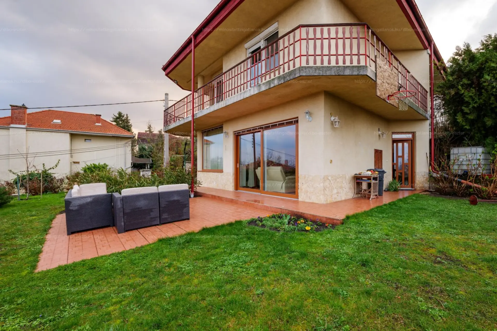 2 erkély van, amelyek közül az egyik körbeöleli a házat, a tágas nappali nagy ablakokkal és lenyűgöző panorámával!