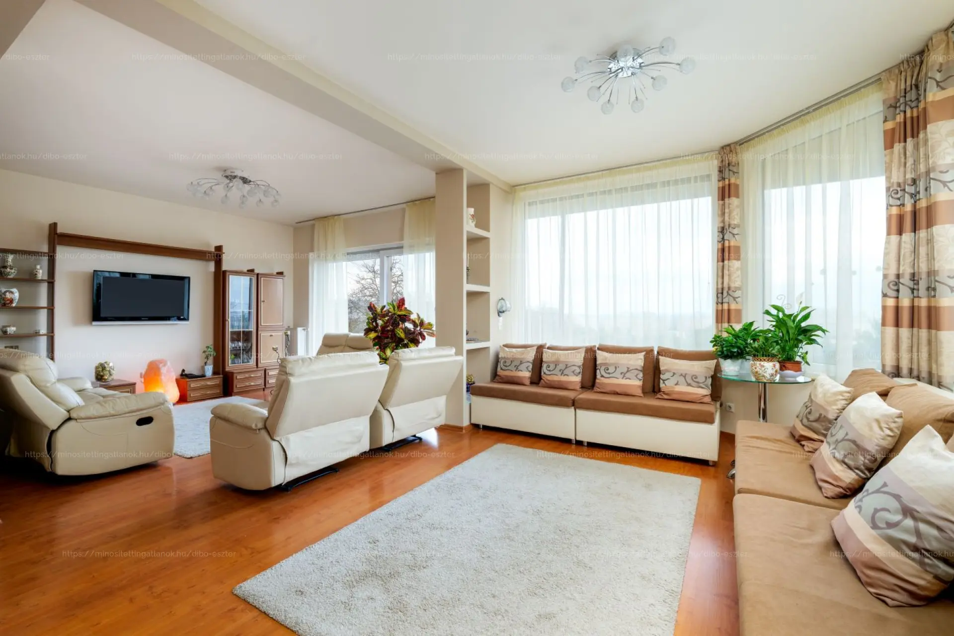 247 m² lakótér praktikus elrendezéssel: 4 különálló hálószoba, 2 teljes értékű fürdőszoba és 4 külön WC.