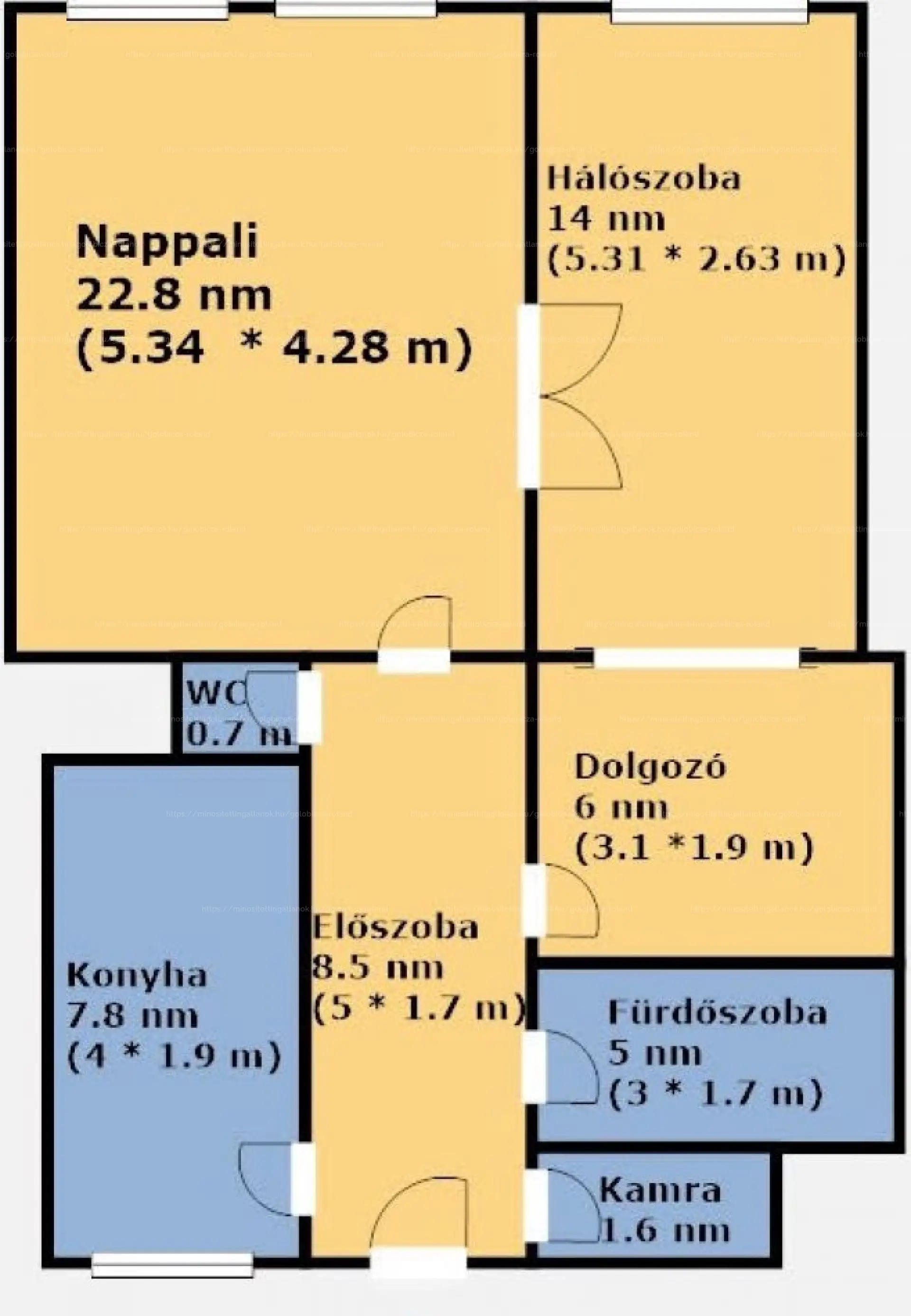 • Kamra: 1,6 m² – extra tárolóhely, amely segít a rendezettség megőrzésében