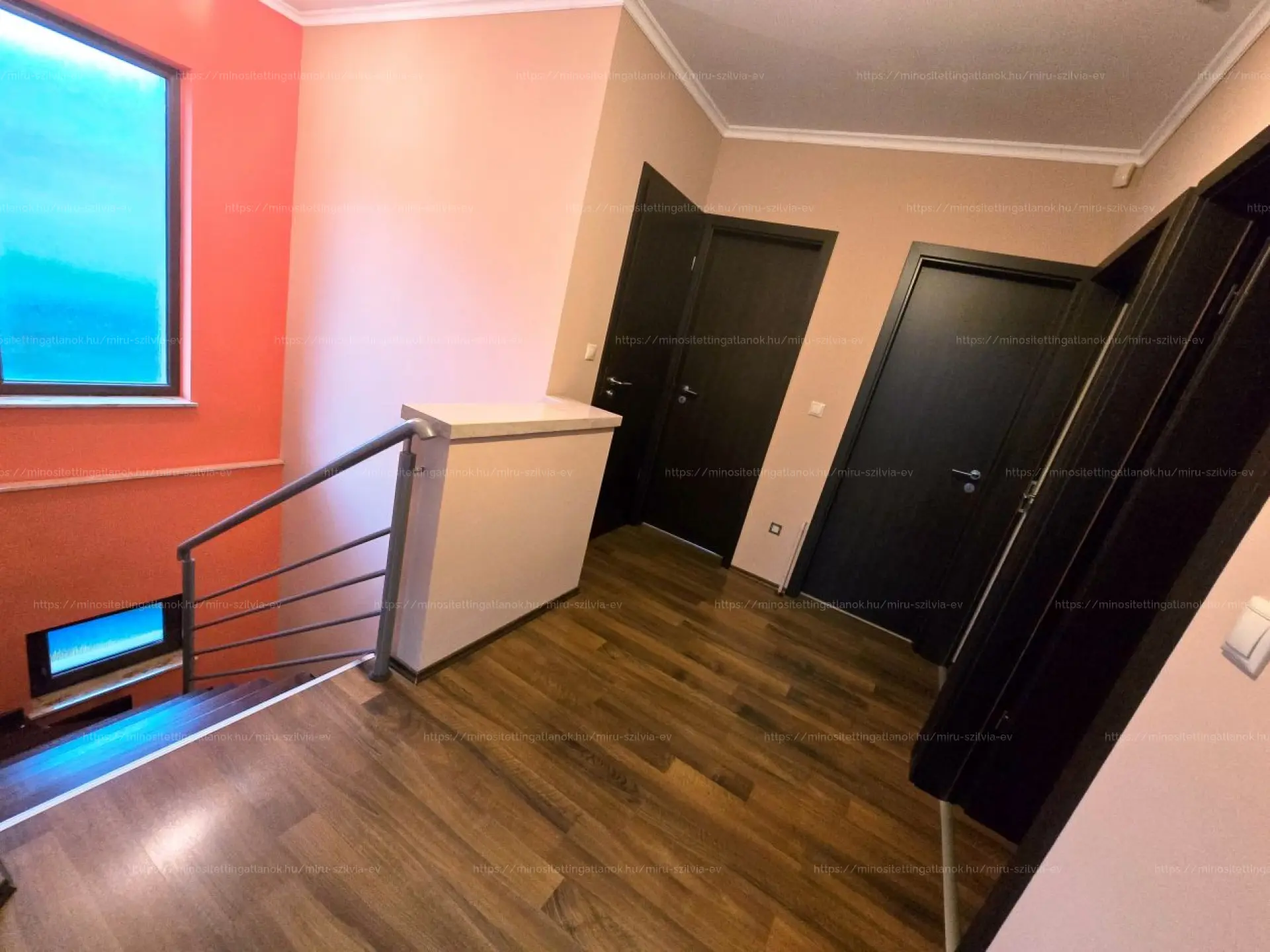 Egyéb extrák: 3X16 A, riasztórendszer, központi porszívó és kamerarendszer vezetékelve, Bosch konyhai gépek, automatizált garázskapu, 60 nm-es deszkázott, járható padlástér, kerti sütögető, öntözőrendszer.