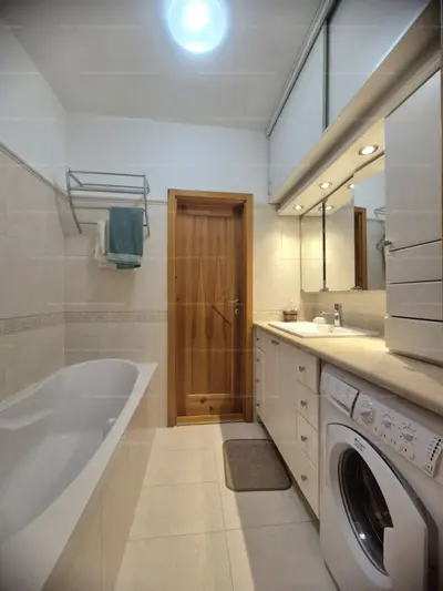 A lakáshoz egy saját teremgarázs-beálló is tartozik, ami közelezően megvásárolandó 8 millió forintért.