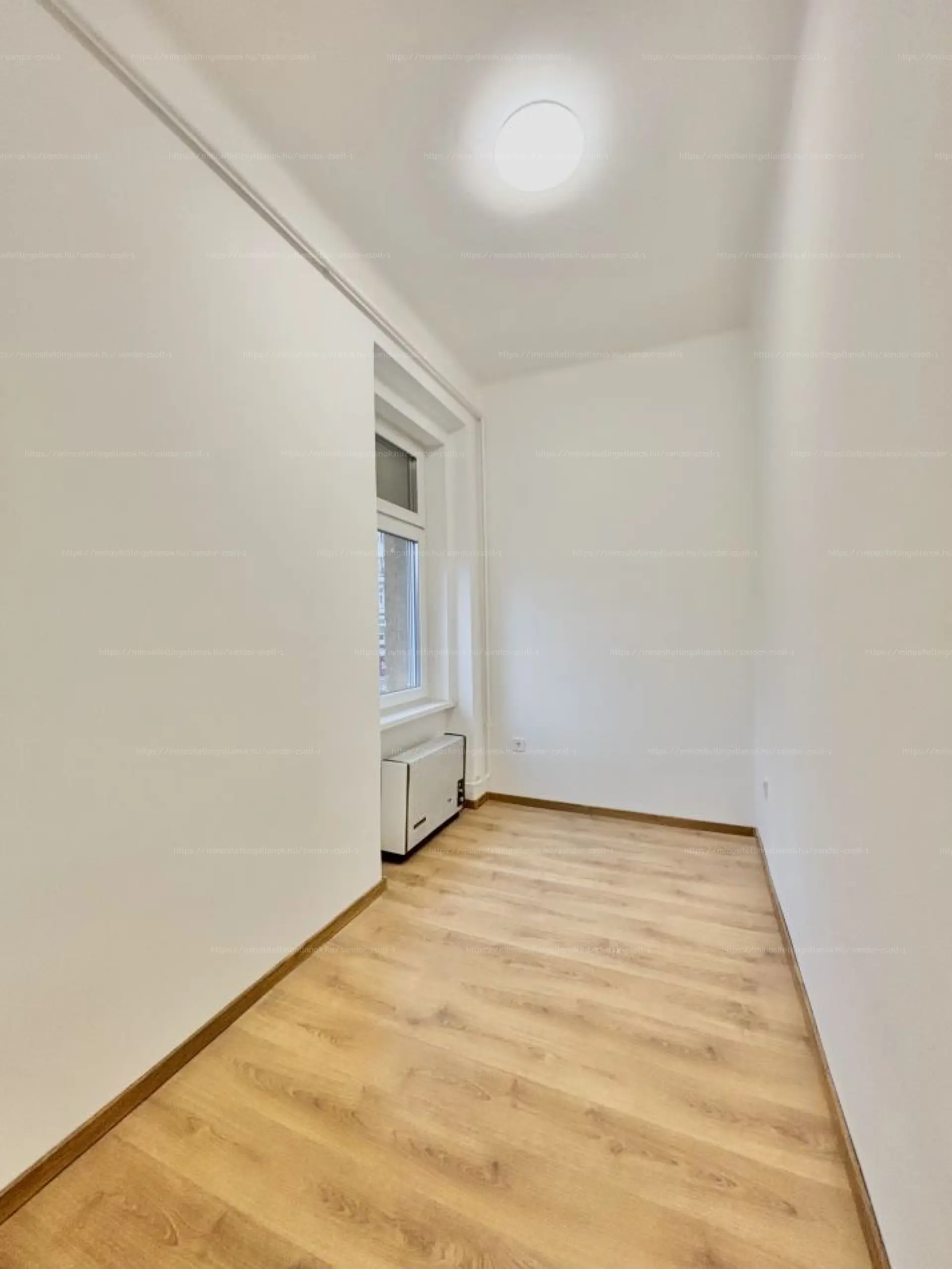 A lakás frissen felújított, még senki nem lakta. A felújítási munkálatokat megfelelő minőségben végezték, igényes a lakás, mind saját célra, mind kiadásra alkalmas. A konyha és étkező külön helységben található, kis spájz is segíti a tárolást. A hálószoba a tágas és világos nappaliból nyílik. A lakás a tér irányába a templomra néz. A fürdő tágas, a wc külön helységben található.