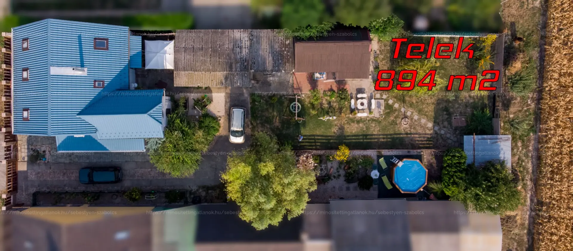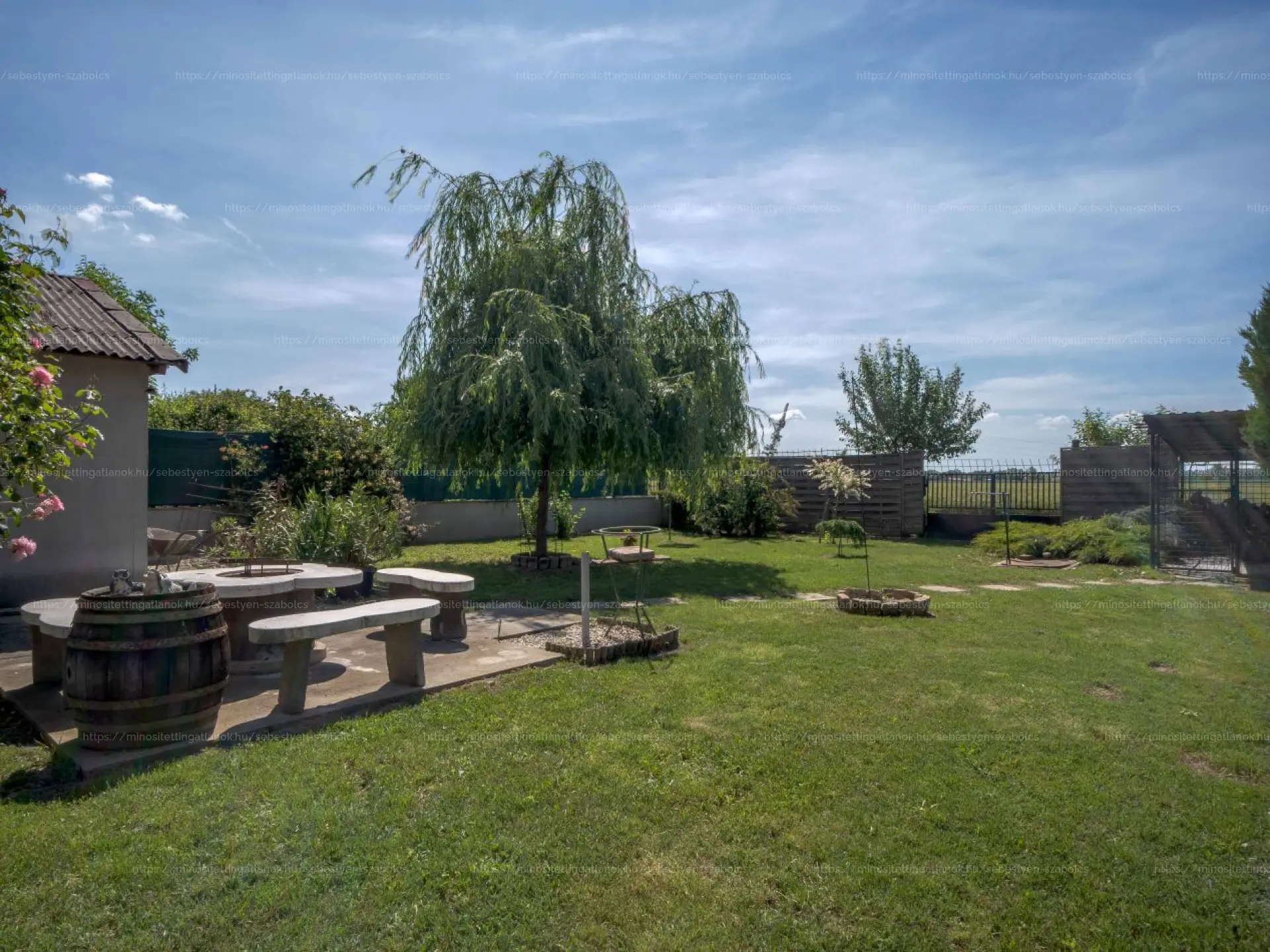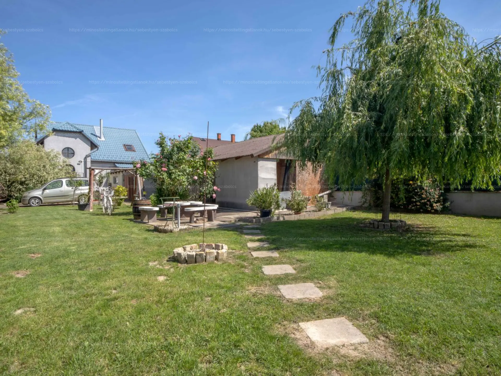 A telek gondozott, parkosított, jó érzés megérkezni. A növények locsolása fúrt kúttal megoldott.