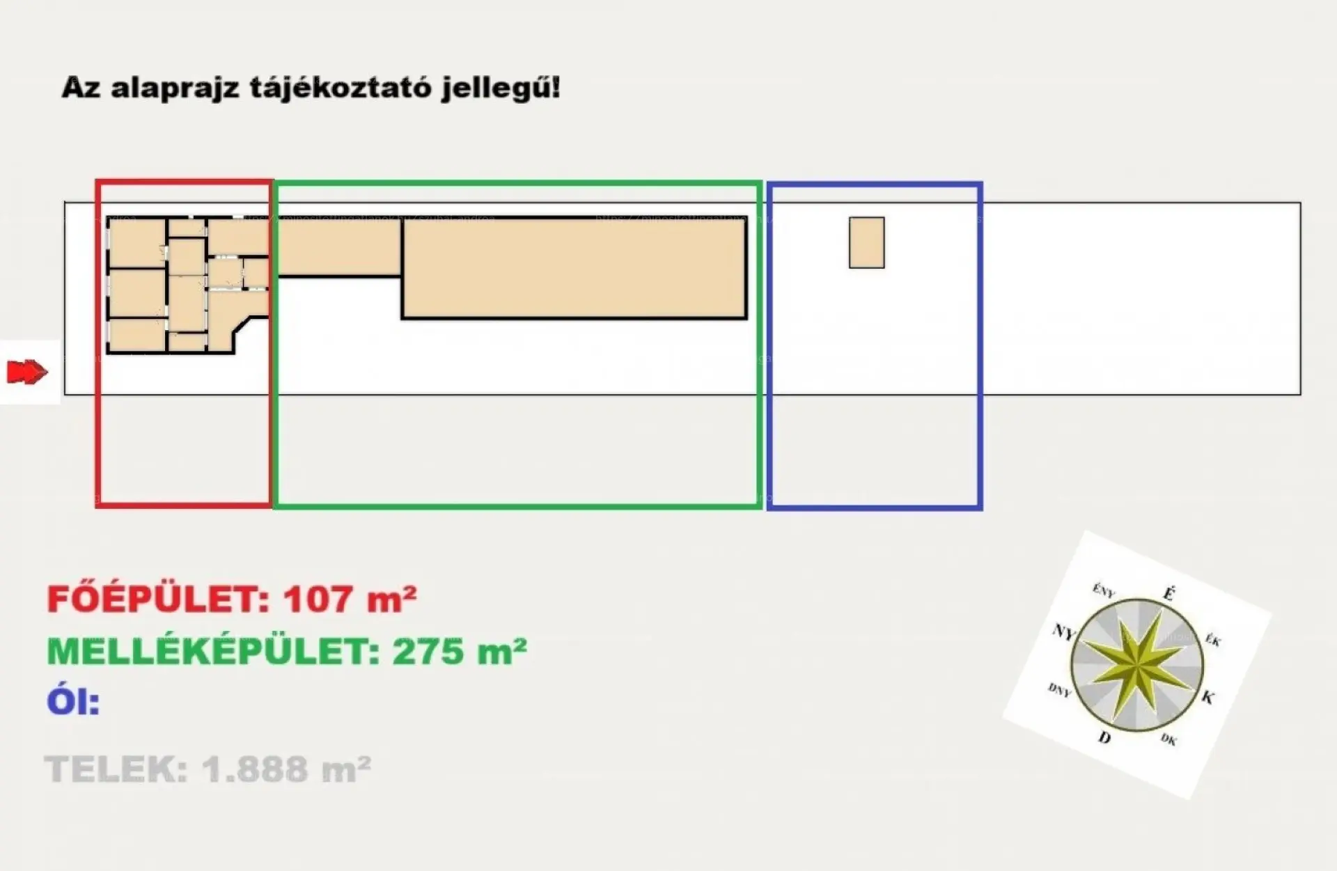 A 275 m2-es MELLÉKÉPÜLET sokoldalúan HASZNOSÍTHATÓ, a nagyméretű TELEK és az összközműves ellátottság pedig STABIL alapot ad bármilyen jövőbeni felújítási vagy korszerűsítési tervhez.