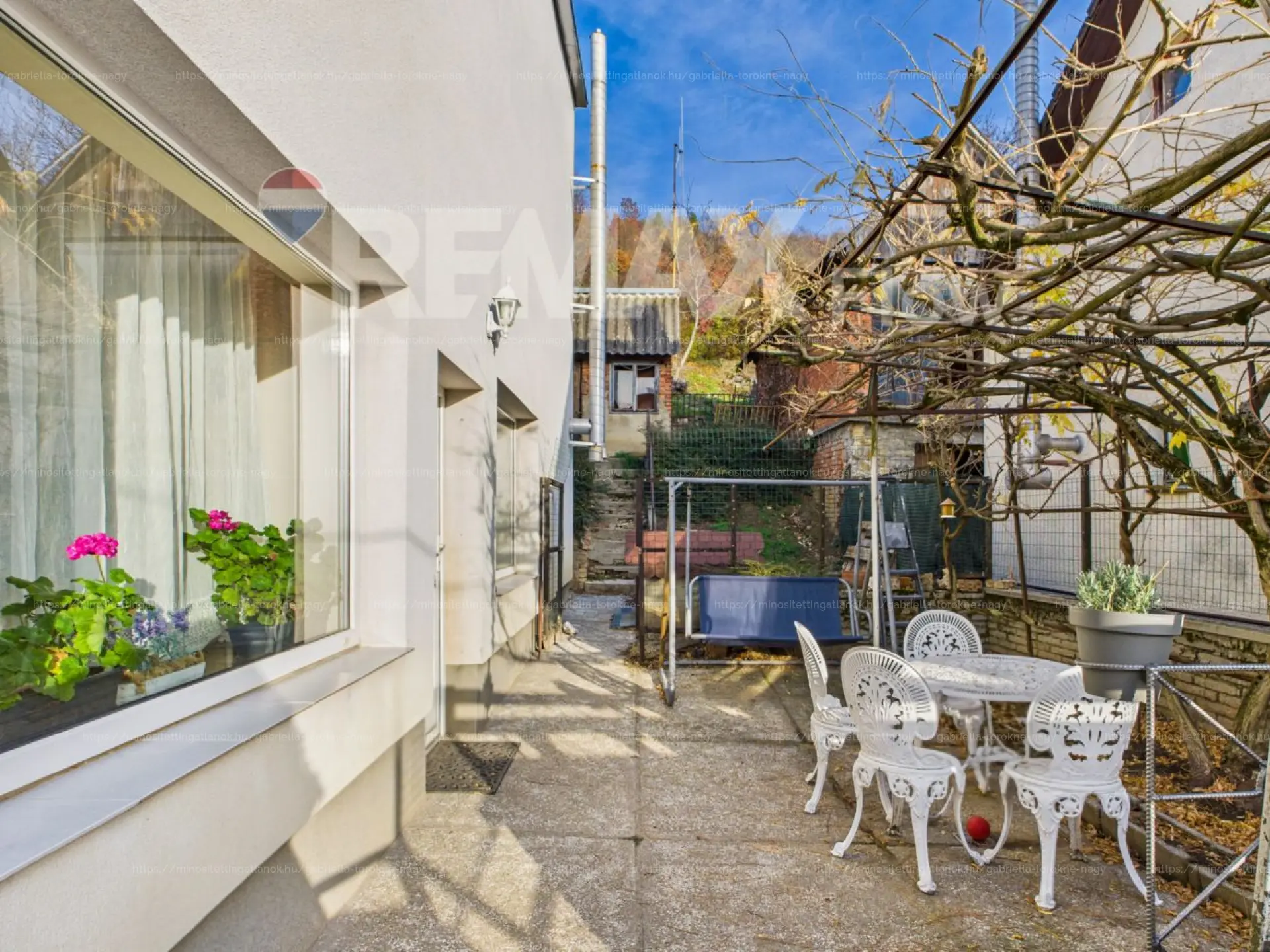 A 1500 m²-es telek meredek, hegyoldali fekvésű, de csodás panorámát és igazi természetközeli hangulatot kínál. Ugyanakkor a tömegközlekedés kiváló, a buszmegálló a szomszéd ház előtt található, így a belváros is gyorsan és kényelmesen elérhető. Az udvarban egy felújítandó melléképület is található.