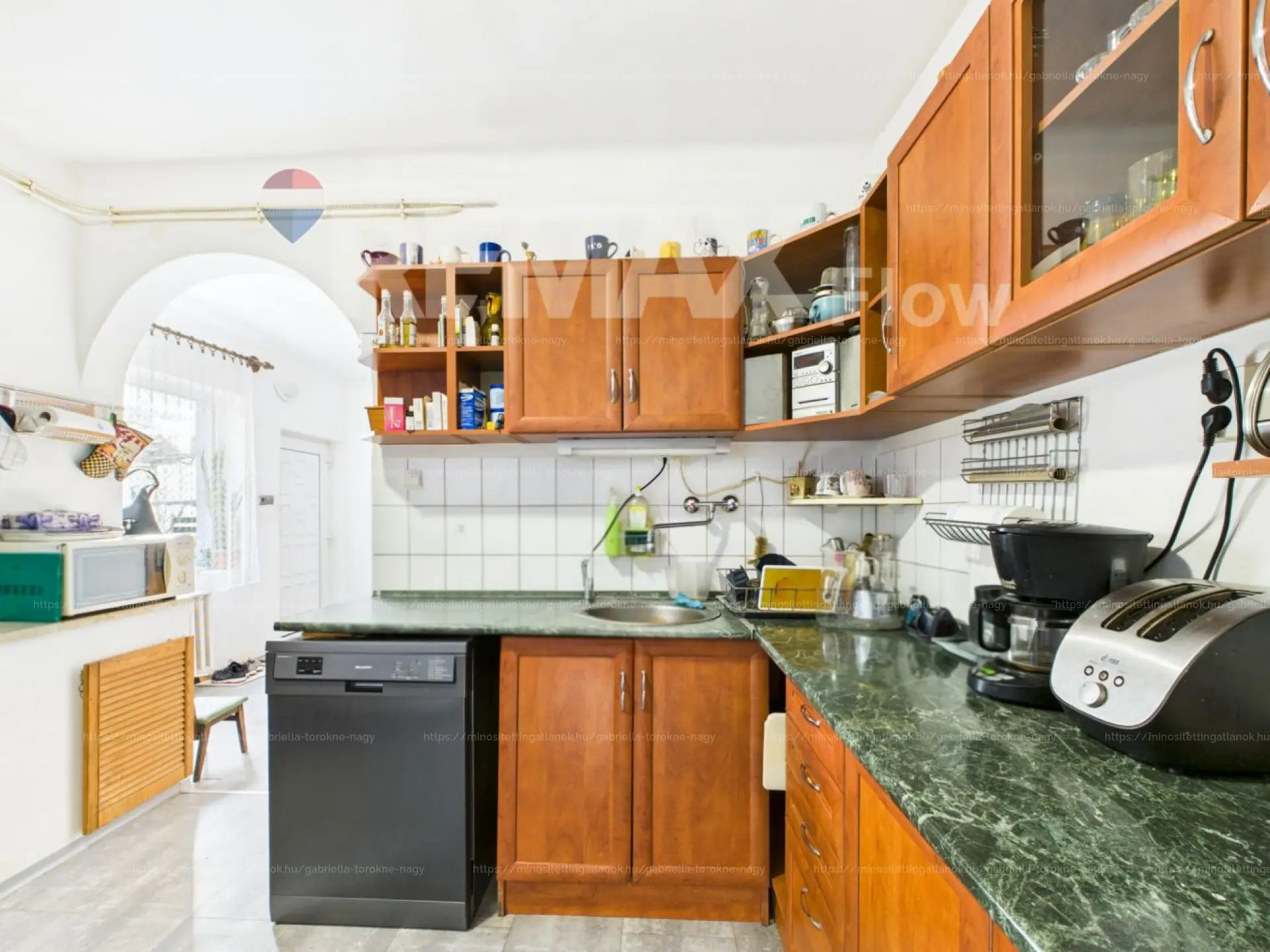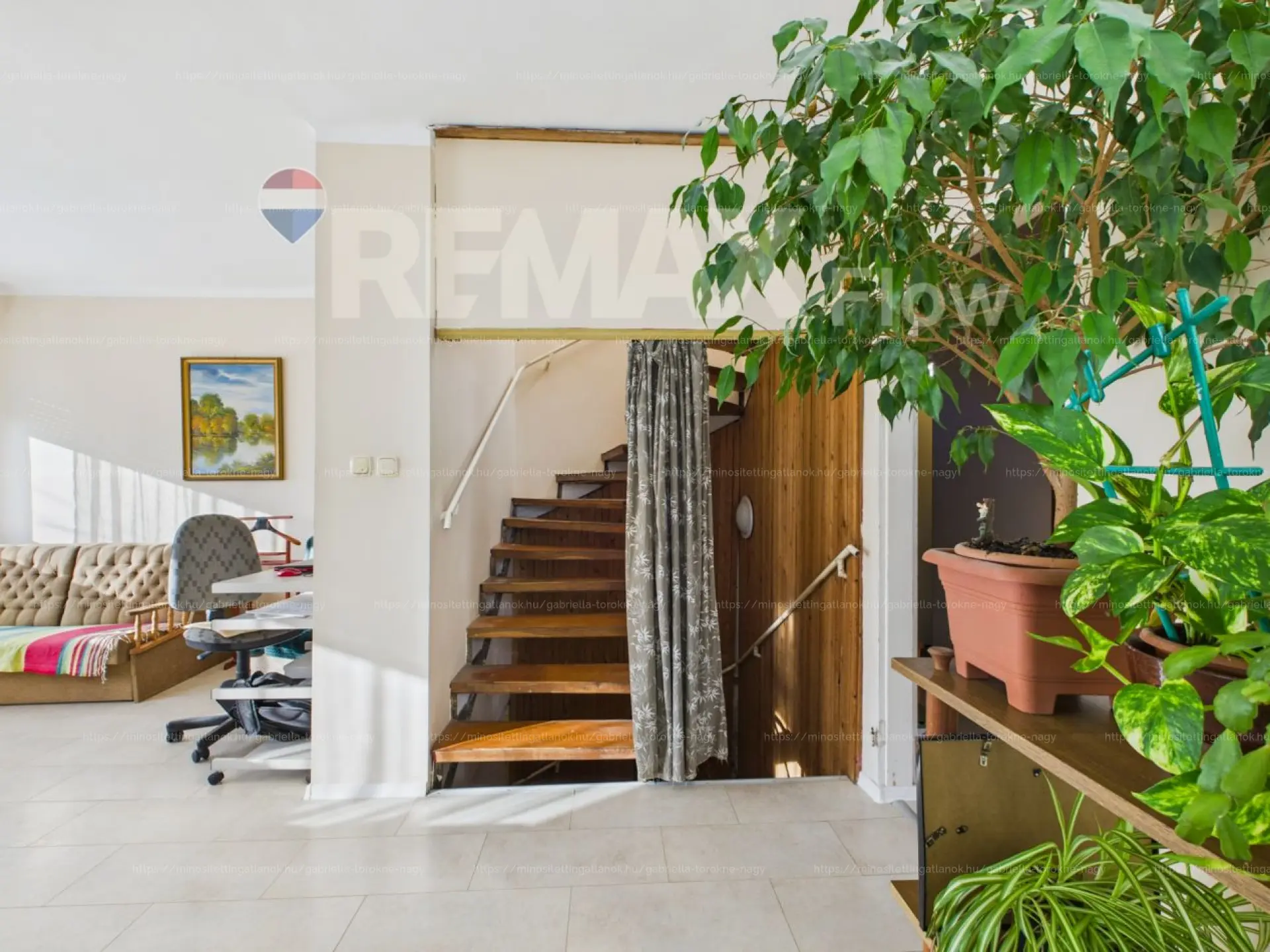 A ház háromszintes, összesen 150 m², ebből a lakótér 100 m², a földszinti szint pedig jelenleg műhelyként funkcionál, de irodának, dolgozószobának vagy vállalkozás telephelyének is ideális lehet. Itt kapott még helyet egy aknás garázs és egy tároló is, a lakótér pedig innen vagy külön bejáraton keresztül is megközelíthető.