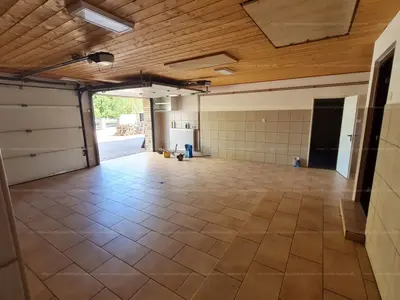 - földszinttel egybeépítve, előszobába nyílóan 3 beállásos garázs (egy 4. kisebb gépkocsi is befér), tároló (akár nyárikonyhának), előtér mosógépkiállással, fürdőhelység zuhanyzóval WC-vel, piszoárral. Mérete: 100 nm.