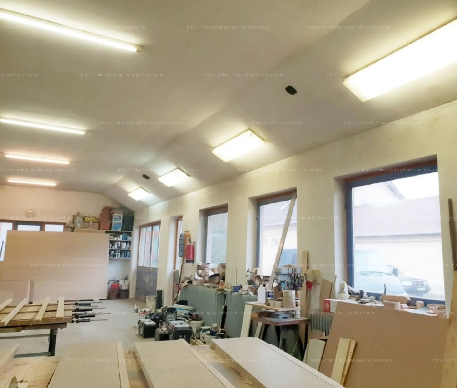 - 120 nm-es MŰHELY, ahol irodai helyiséget, öltözőt, zuhanyzó/wc-t, és kazánházat alakítottak ki;