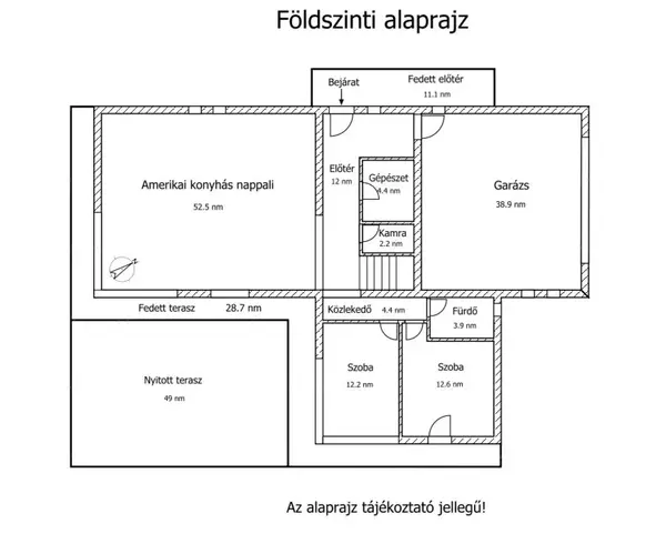 A földszinten található nappali közvetlen kapcsolattal rendelkezik a kerttel.