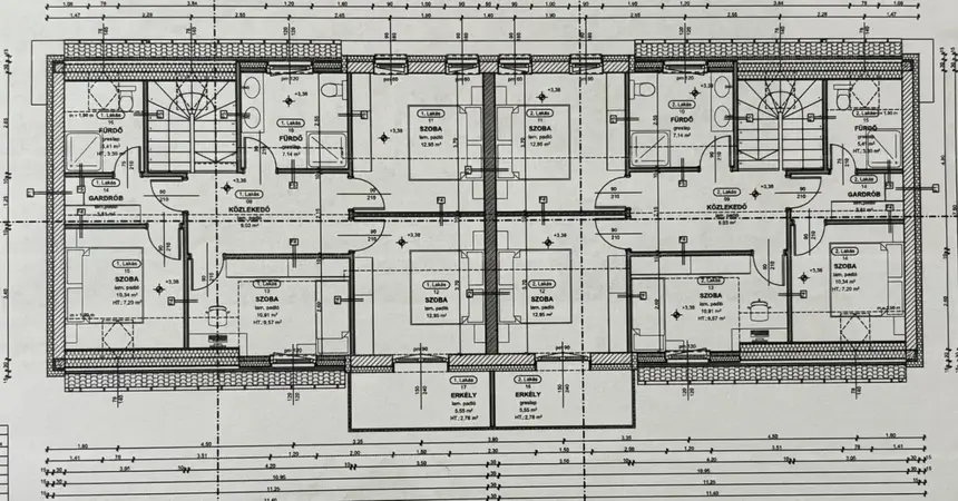 • 4 külön nyíló hálószoba (12,95 m², 12,95 m², 10,91 m², 10,34 m²)