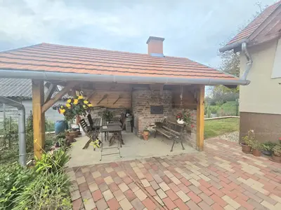-A házhoz tartozó kerti kiülő és kemence: 8 éve, gondosan építve