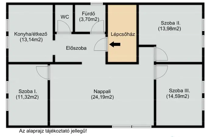 - 3 szoba (14,59m2, 13,98m2, 11,32m2)