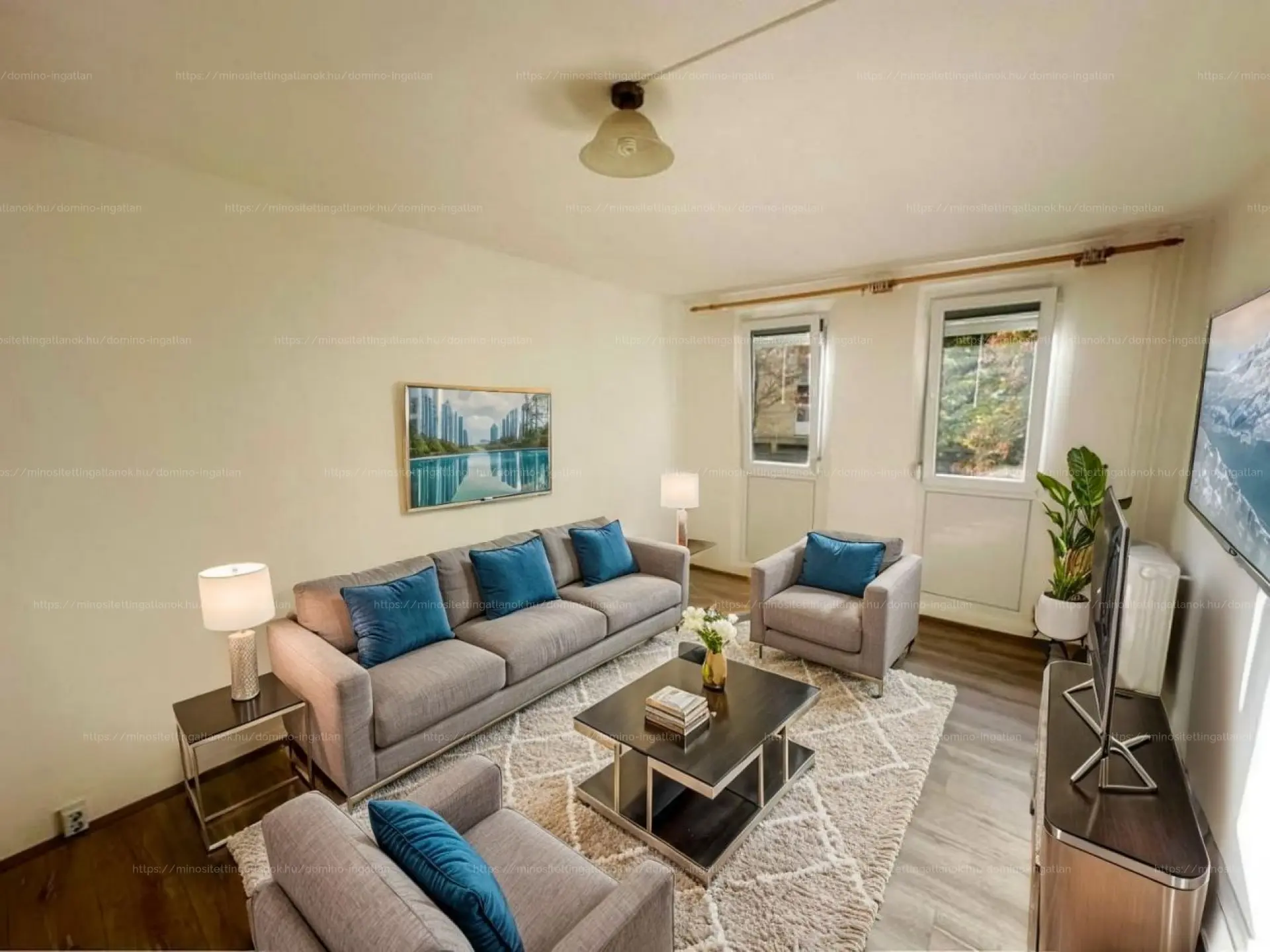 A lakás jelenleg bútorozatlan. A bútorozott fotók csupán látványtervek.