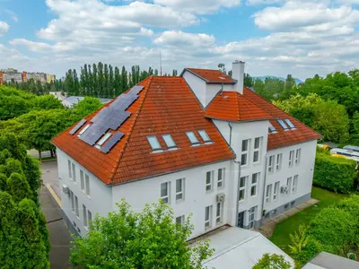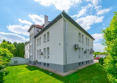 Eladásra kínálunk egy mintegy 1100 m²-es, téglaépítésű, korszerű irodaházat, amely négy szinten – alagsor, földszint, emelet és tetőtér – biztosít ideális munkakörnyezetet. Az épület minden szintje tágas, jól tagolt, világos, a tetőtér a bedőlések ellenére is nagyrészt hasznosítható. A helyiségek állapota rendezett, az épület egésze folyamatos karbantartás alatt állt, így azonnal birtokba vehető.