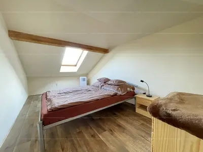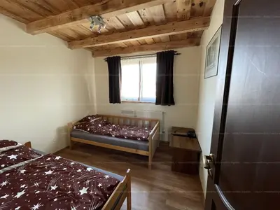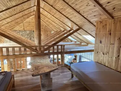 lakótér: konyha(kamra)-étkező-nappali, terasz kapcsolattal, 3 hálószoba, fürdőszoba, wc. A nappaliból épített fa lépcsőn jutunk fel a galériaszintre ahonnan 2 db hálószoba nyillik.