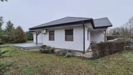 Eladó Kecskemét Budai hegyben 137 nm-es családi ház, parkosított 3422 nm telken, garázzsal, plussz két autónak fedett kocsibeállóval. A lakótér 97 nm, garázs 20 nm és a terasz 21 nm.