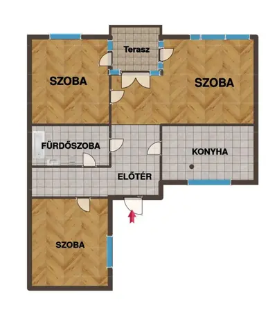 Alapterület: tágas és világos nappali + 2 külön nyíló hálószoba, de a lakás könnyen 3 vagy 4 hálóssá alakítható