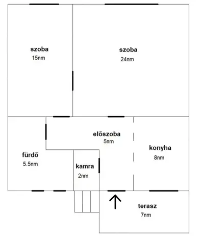 ✅ A lakás tágas és nagyon jó elosztású, két külön is nyíló szoba, nyitott, ablakos étkezőkonyha, ablakos fürdőszoba káddal és zuhanykabinnal, kamra, előszoba és egy 7m²-es terasz, ahonnan a lakás bejárata nyílik.