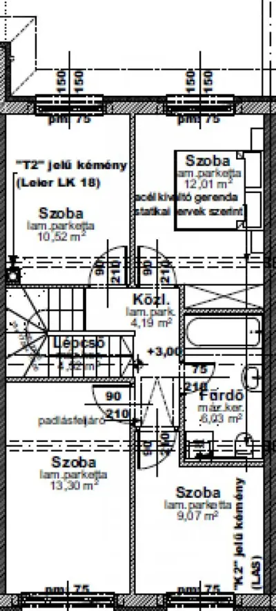 A felső szinten négy hálószoba és fürdőszoba mellékhelyiséggel kapott helyet. A kertre néző szobák világosak, a másik kettő a bejárat felé tájolt.