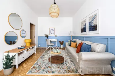 A lakásban található további bútorok, lámpák, berendezési tárgyak és dekorációk külön megállapodás alapján elérhetők, akár a komplett berendezés is megvásárolható.