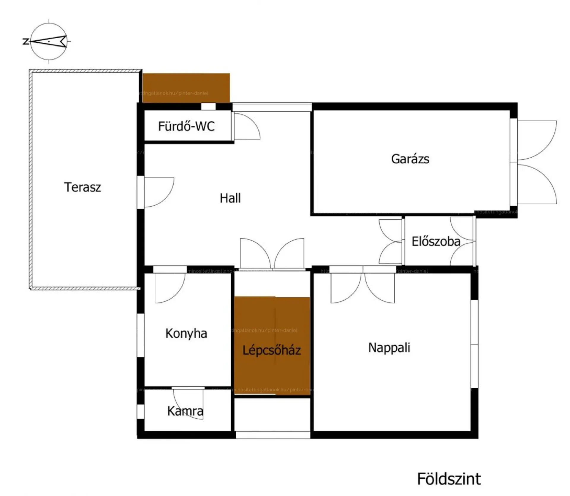 a válaszfalak. A tájékoztató jellegű alaprajzon jelöltek a falvastagságot és a helyiségek elrendezését.