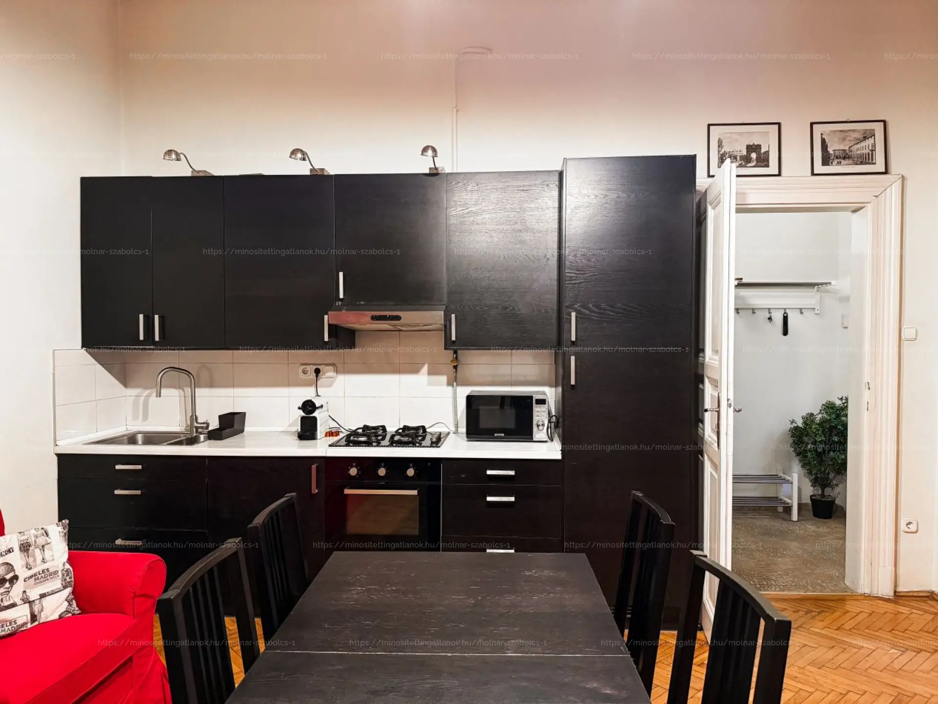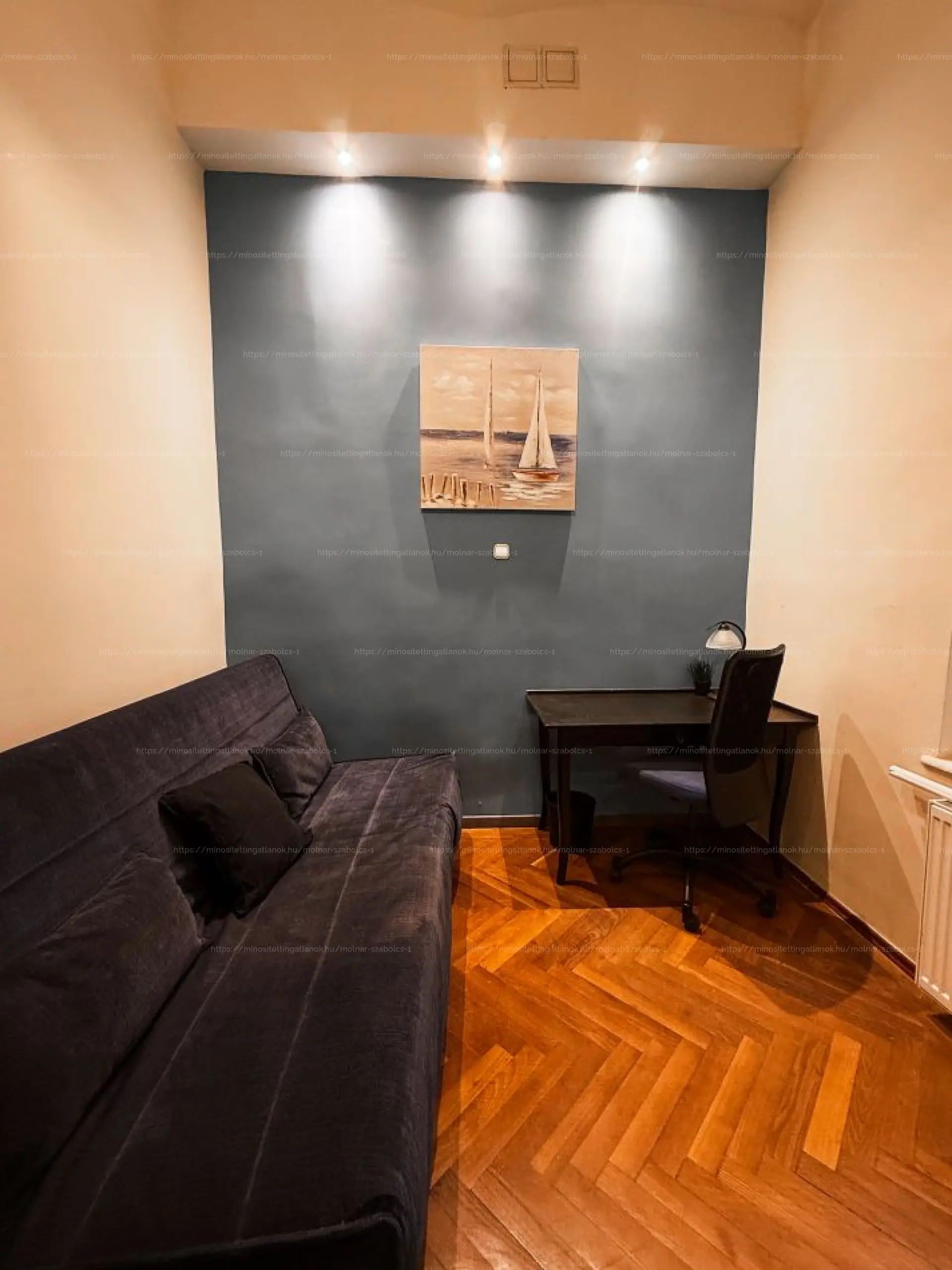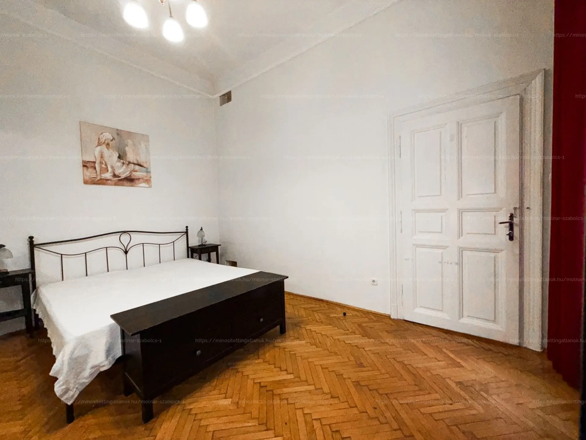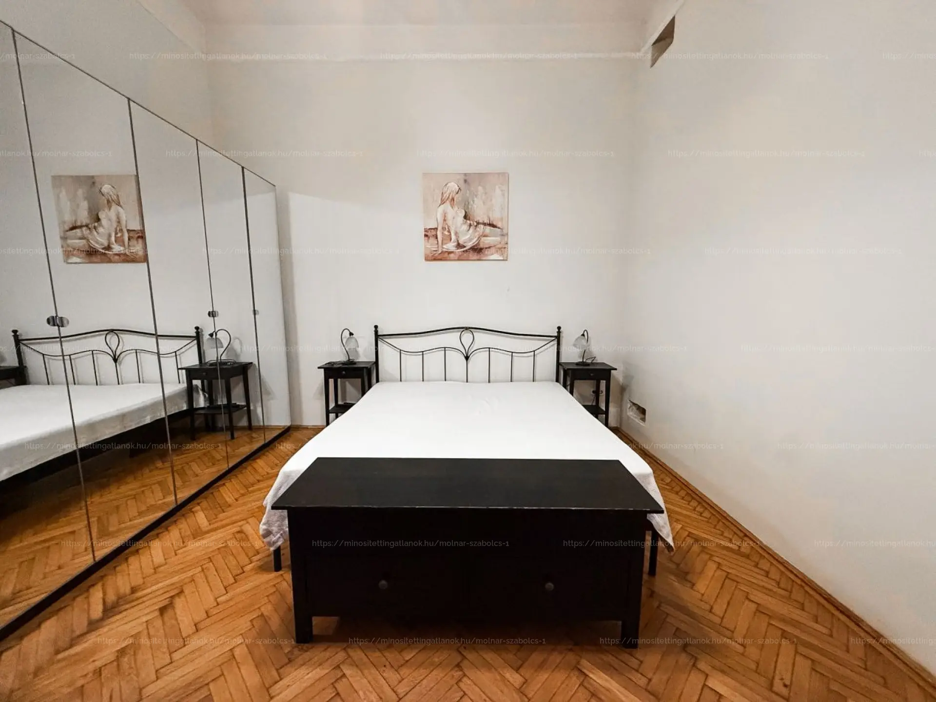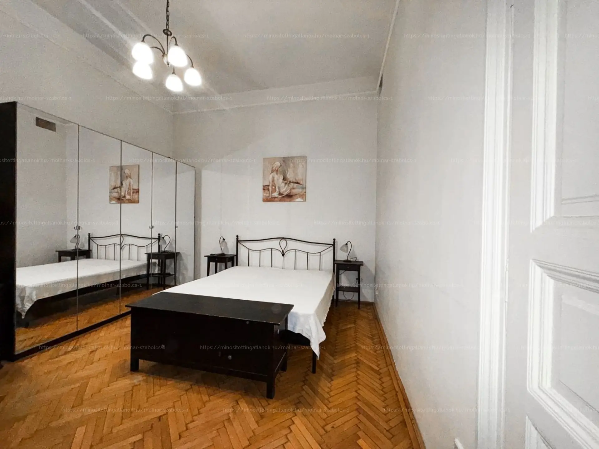 Az eredeti, gyönyörű állapotú parketta a legtöbb helyiségben megmaradt; a kisebb hálóban modern, extra vastag tömörfa parketta található. A nyílászárók eredeti 19. századi ablakok, felső íves szakaszokkal. A mennyezetek impozánsan magasak, ahogy az ebben a korban épült lakásoknál megszokott. A berendezés klasszikus stílusú, illeszkedve az épület történelmi karakteréhez.