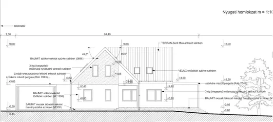 Emelet: hasznos alapterülete: 44 nm (bruttó 57 nm), 2 hálószoba, fürdő, Wc, előtér kerül kialakításra.