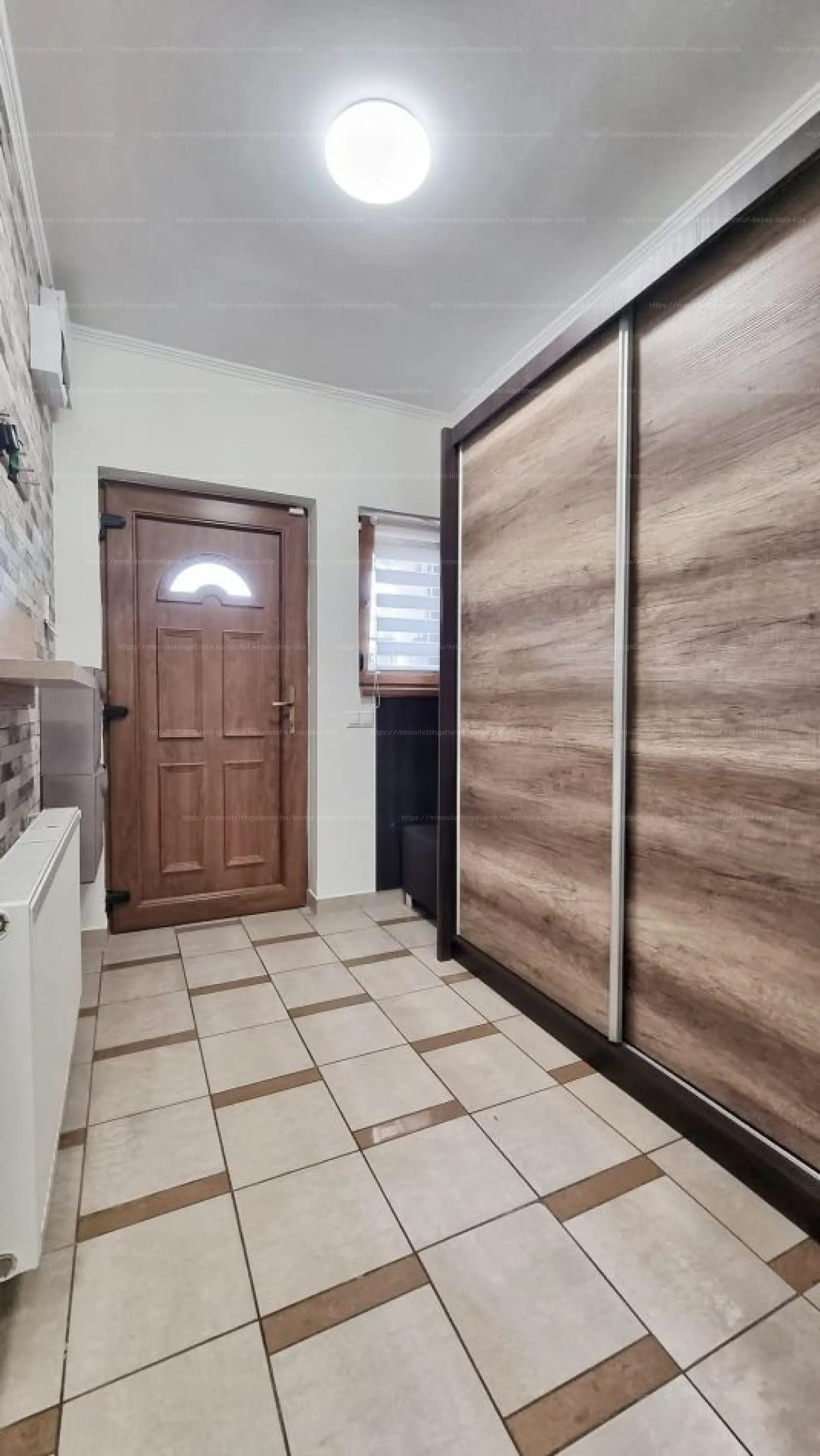 Elektromos garázskapuval felszerelt garázs, bajárattal a lakótérbe, valamint a ház előtt kettő térkövezett beálló található.