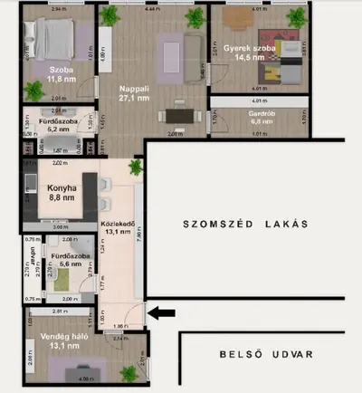 A lakás fenntartási költségei az egyedi mérőóráknak, műszaki felújításnak köszönhetően kedvezően alakulnak.