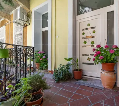 A csendes egyirányú mellékutcának köszönhetően az első emeleti, utcai nézetű lakás is világos, csendes.