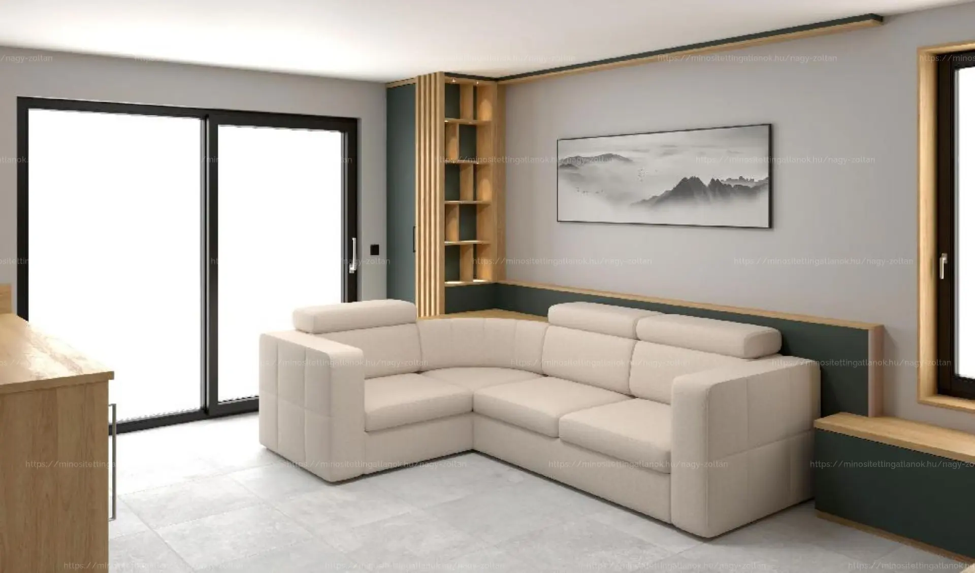 Melegpadló: Vevő által választott laminált padlóburkolat (max. bruttó 5.000 Ft/m + alátét fólia, szegély: max. bruttó 850 Ft/fm)