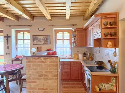 Melegvízellátásáról és fűtéséről kombi gázkazán gondoskodik lapradiátor hőleadókkal, azonban egy impozáns méretű dekoratív búboskemence is rendelkezésünkre áll, mely azon túl, hogy isteni ételeknek elkészülését is biztosítja, felmelegíthető vele az egész ingatlan.